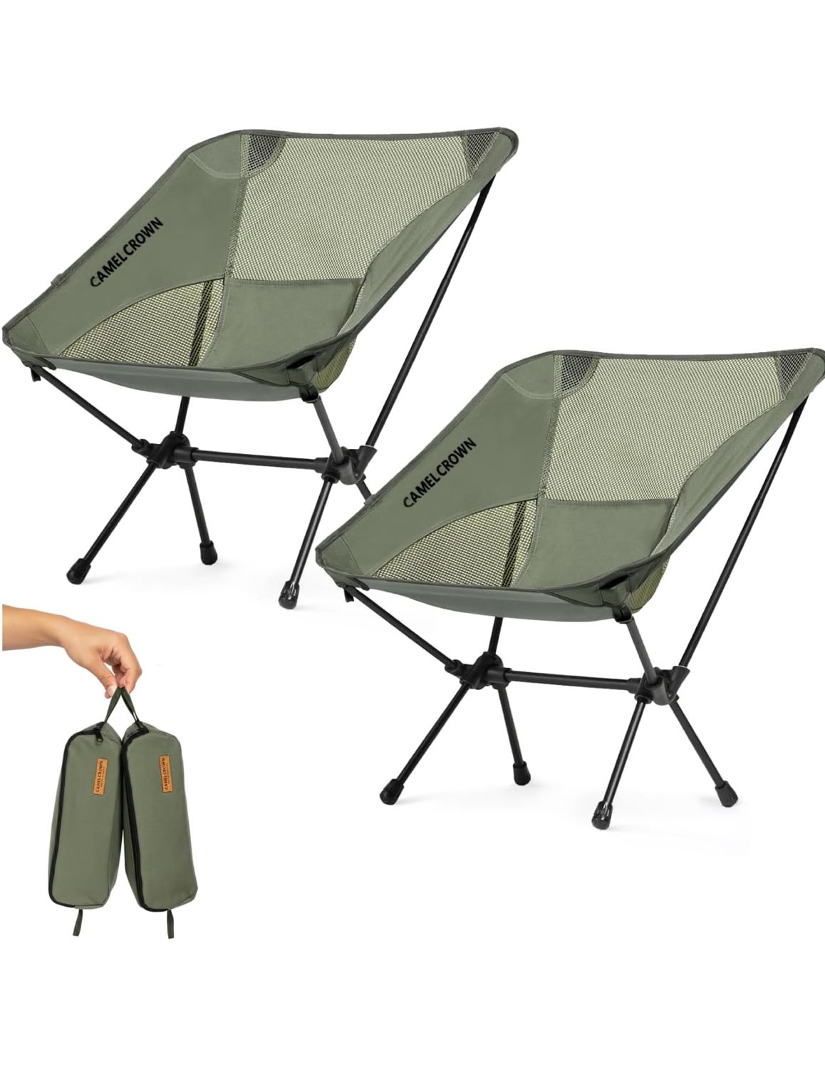 CAMEL CROWN Portable Camping Chair Lightweight Compact Folding Chair Mesh for Outdoor Camp Travel Beach Picnic Festival Hiking Backpacking Army Green