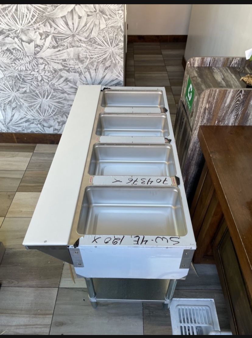 Es una mesa para comida caliente y es Nuevo pero tiene Golpe en la sequins pero todo sirve. Las Medusa’s están en las photos avisa me por texto de caulquier pregunta I SPEAK ENGLISH AS WELL