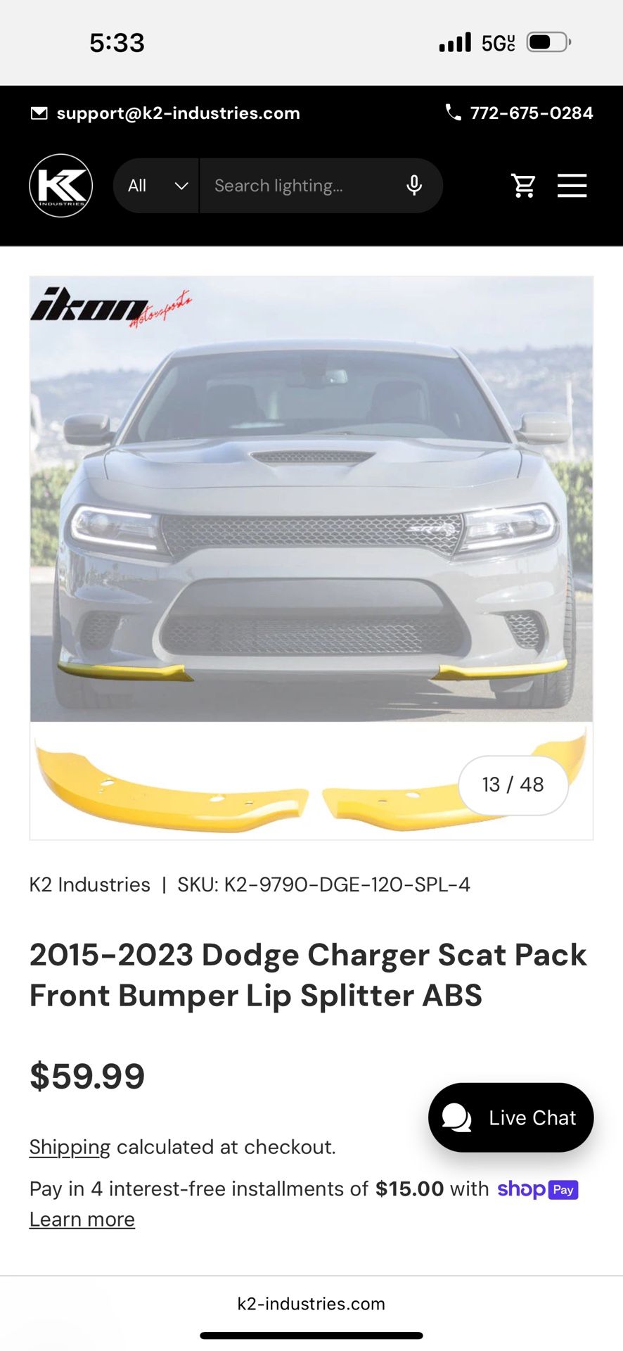 Brand new Yellow lip covers For 2015+ Dodge Charger SRT+ other models Check online for specs Lost hardware $20 brand new Or trade for 9005 LED bulbs