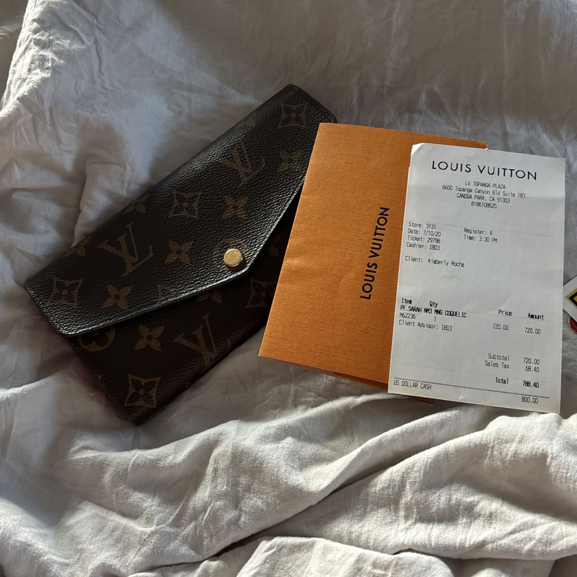 Louis Vuitton Sarah wallet with poppy color (red). It’s in great condition I bought in 2020. I don’t really gravitate towards it I prefer my smaller Louie. Probably used it twice. It comes with the original receipt and it has also been authenticated on Mercari $500or best offer ready to get rid of it !