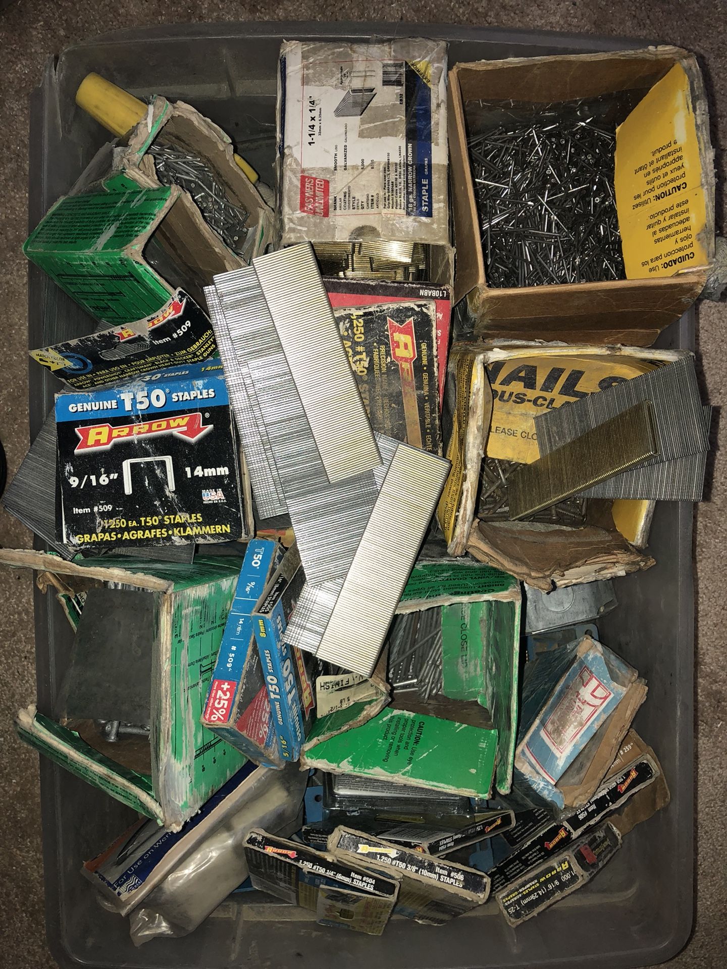 Boxes and boxes of staples and nails some never opened. No use for these materials. Asking $75 OBO