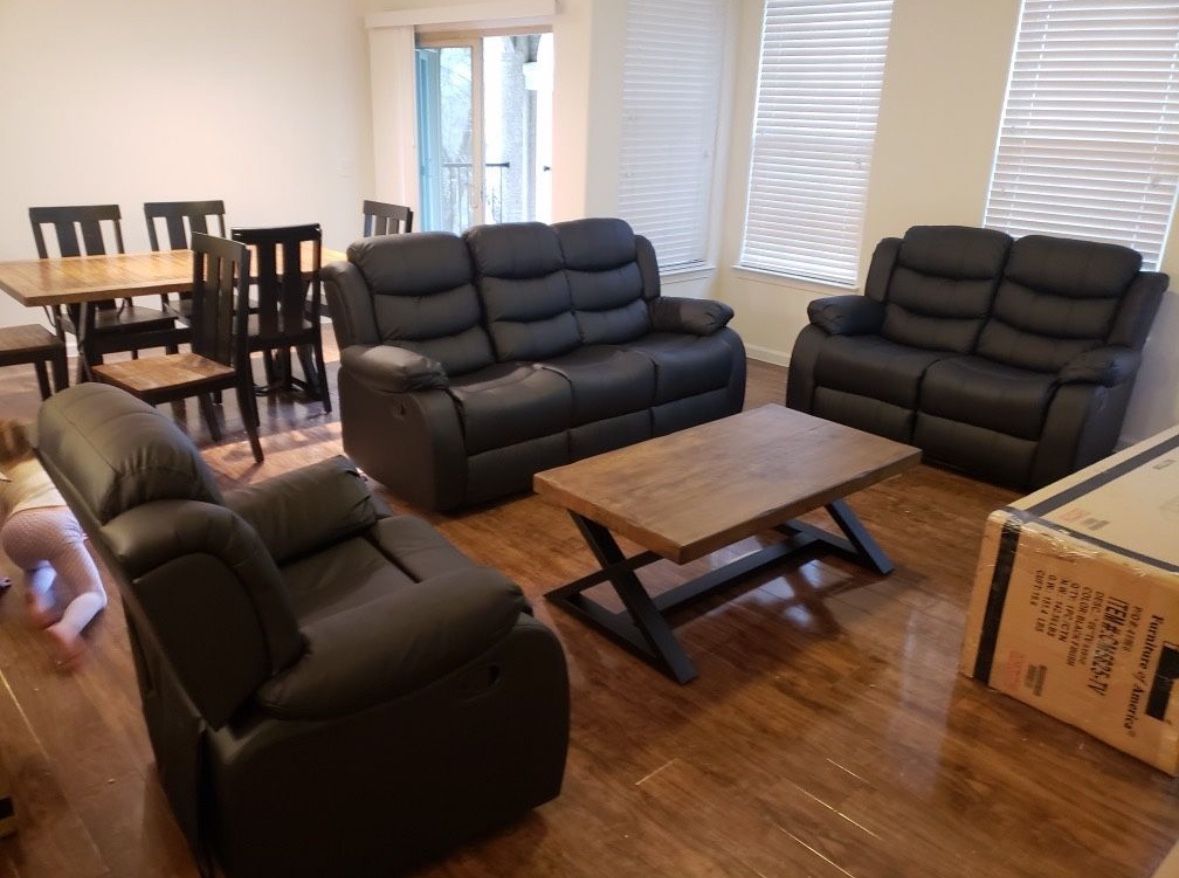 Visit website at Faithfullyshop.co BRAND NEW 3 PIECE RECLINER SET $1395 INCLUDING DELIVERY!! AVAILABLE IN BROWN OR BLACK!! Brand new delivered in boxes!! Get all 3 pieces delivered for $1395 $1295 if you pick up yourself !! Available in black or brown !! Price includes delivery!! Assembly $75 if needed!! You don’t pay until we deliver!! Cash, cash app or Zelle accepted at delivery!!