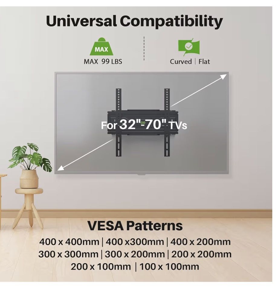 inch TVs up to 99 lbs, Wall Mount Bracket with Dual Articulating Arms, Swivel, Tilt, Max VESA 400x400mm, TV Mount Fits 12”/16” Wood Studs Model#XML028-k (Open box) (777)