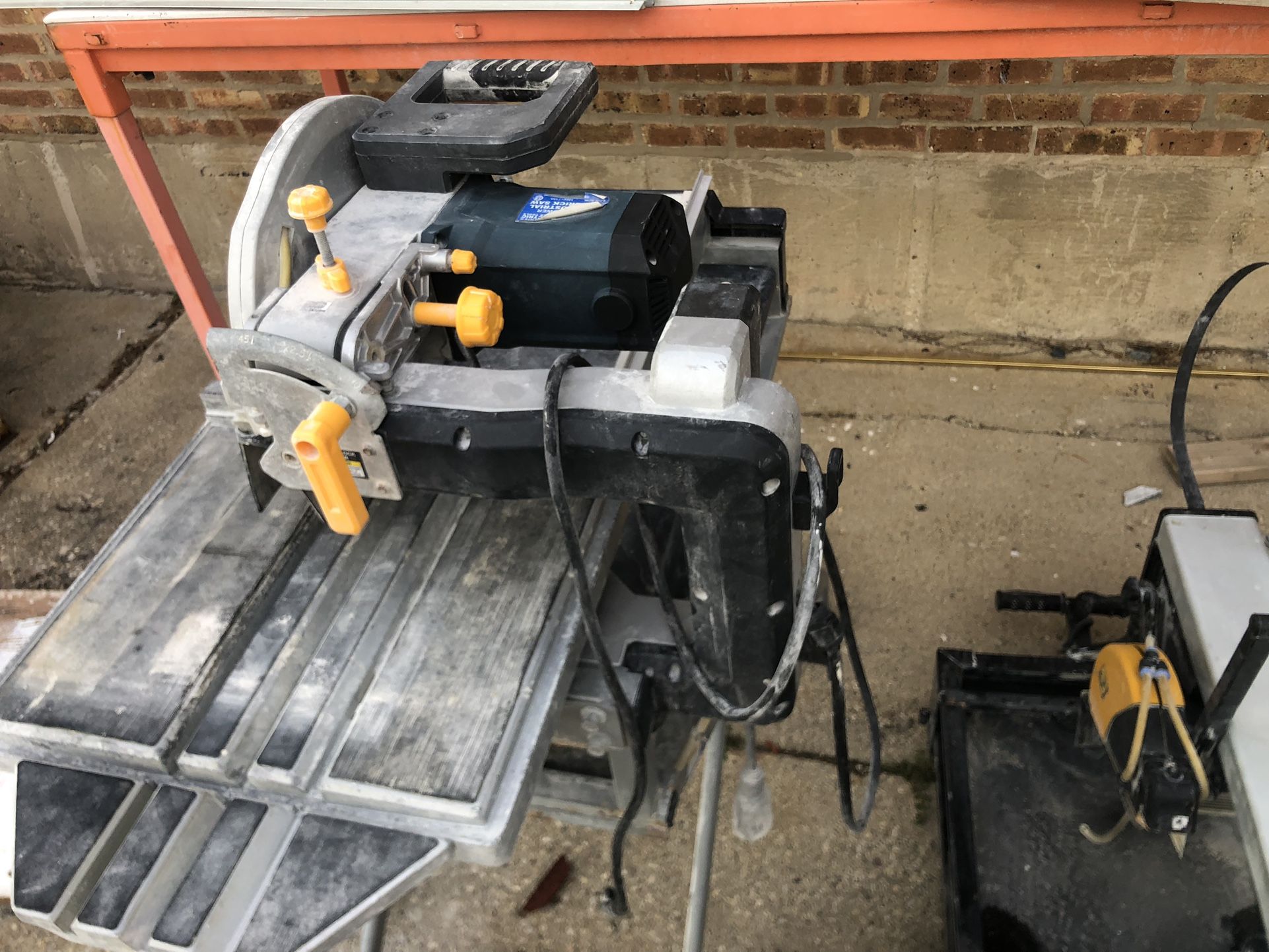 Chicago electric 10” tile saw and 30” QEP Bridge Wet Tile Saw. Working condition. Probably both saws need new water pump. 30” bridge saw has transportation wheels.