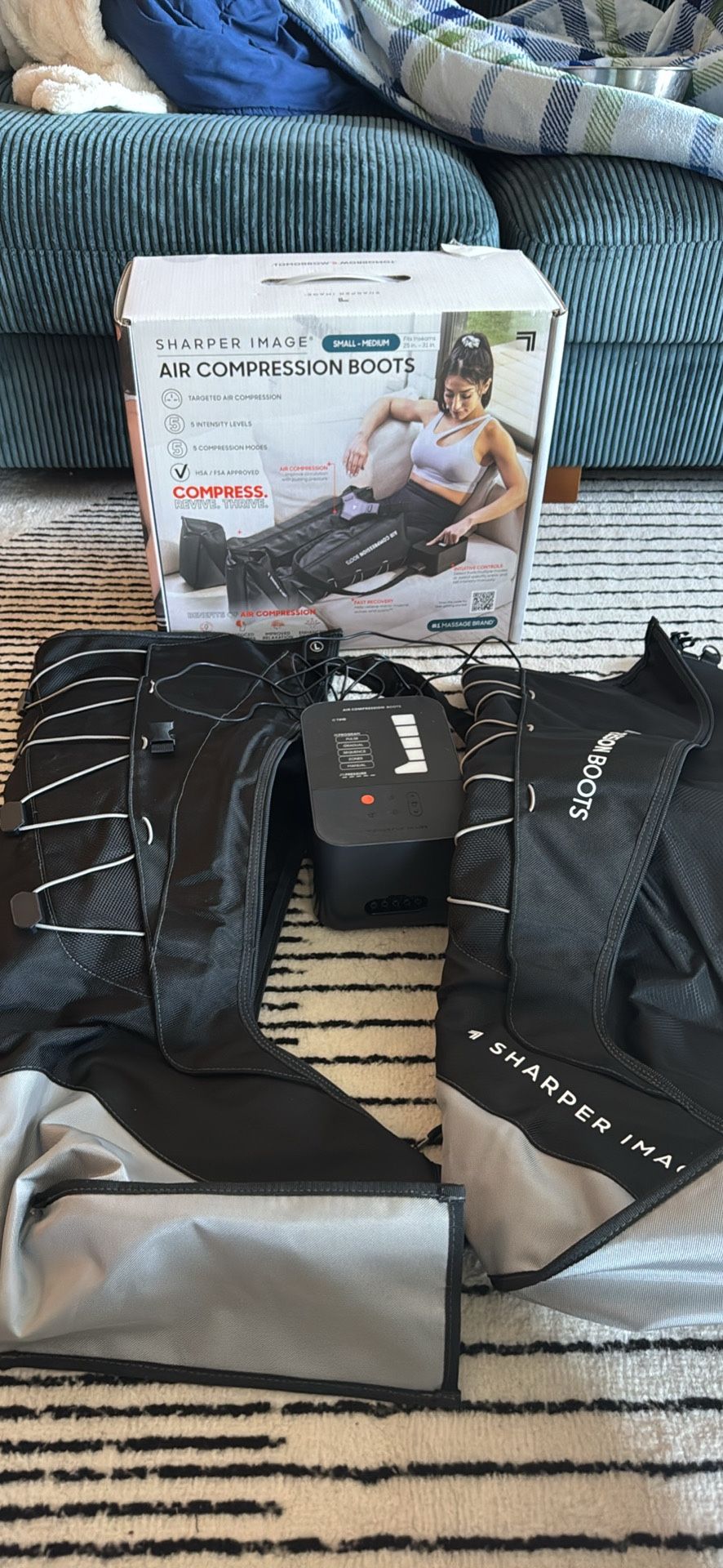 Compression boots for relief and wellness. Only used once, intact with box and packaging.