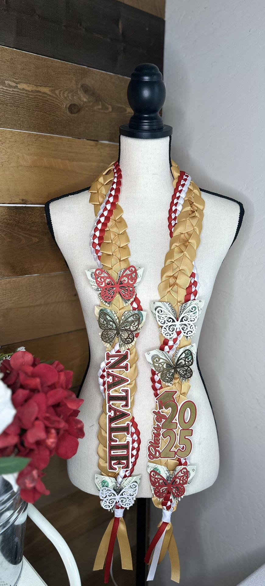 Lei perfect for upcoming graduation -Name & date when needed. -Detailed description. -inspirational picture of design. Every lei is completely customizable. NON-REFUNDABLE DEPOSIT IS REQUIRED. IG:aacreations422