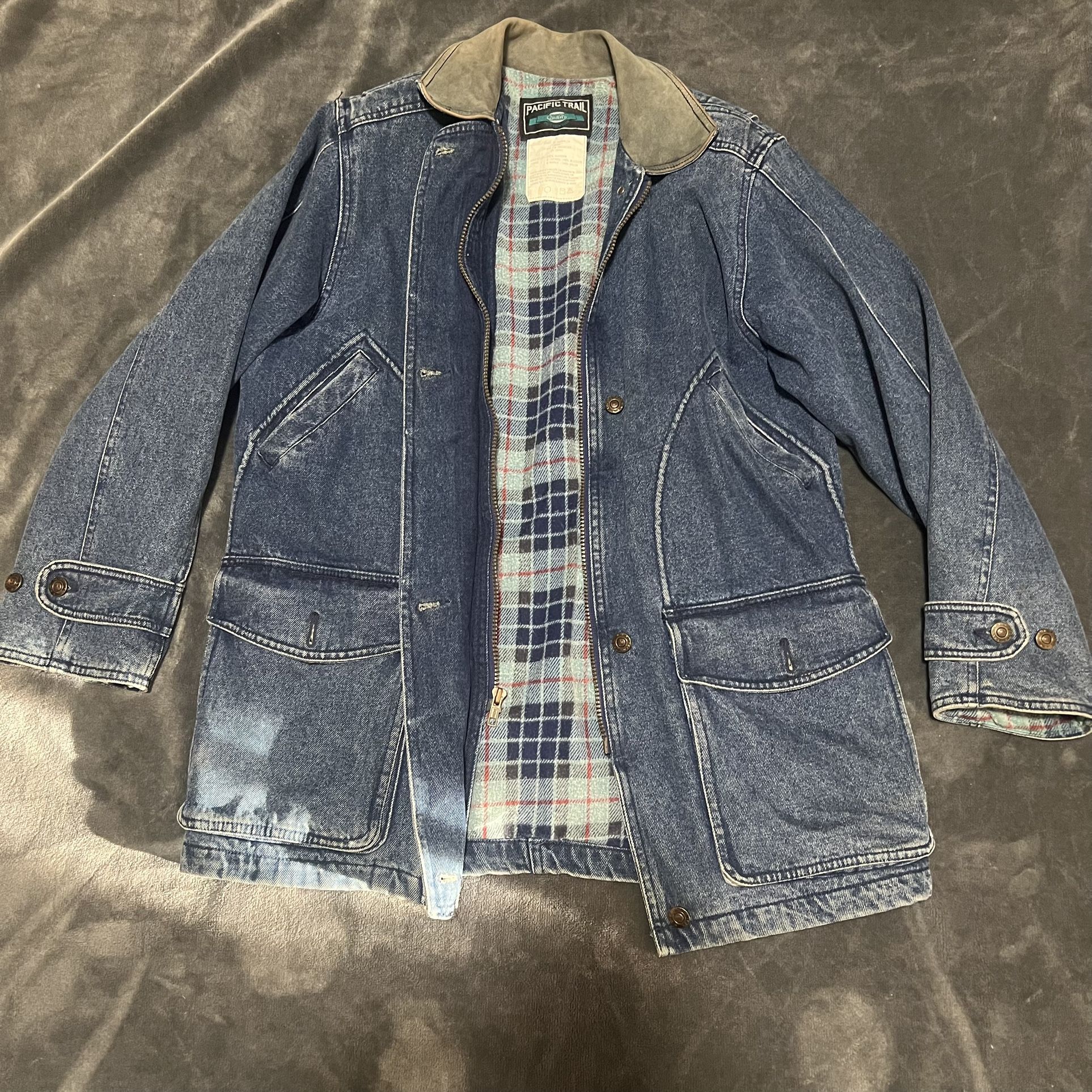 Vintage Pacific Trail Jacket Mens Small Blue Denim Plaid Lined Chore Coat Barn. Pre owned condition. Heavy duty jacket . Smoke free home. See pictures for measurements.