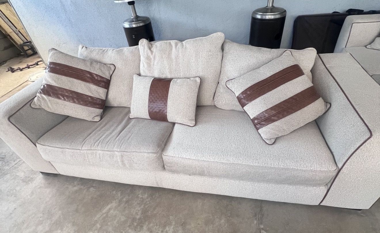 Beige living room set. Includes larger couch and love seat. Need gone