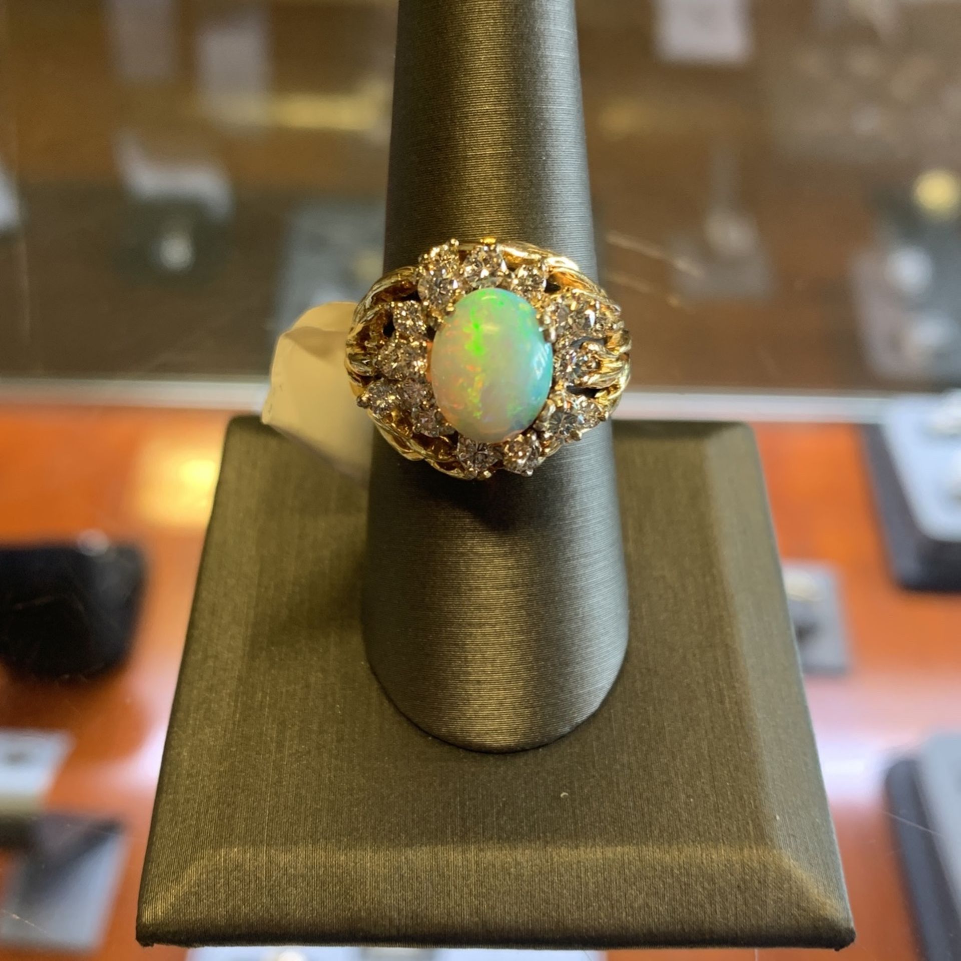 Opal & Yellow Gold Diamond Ring