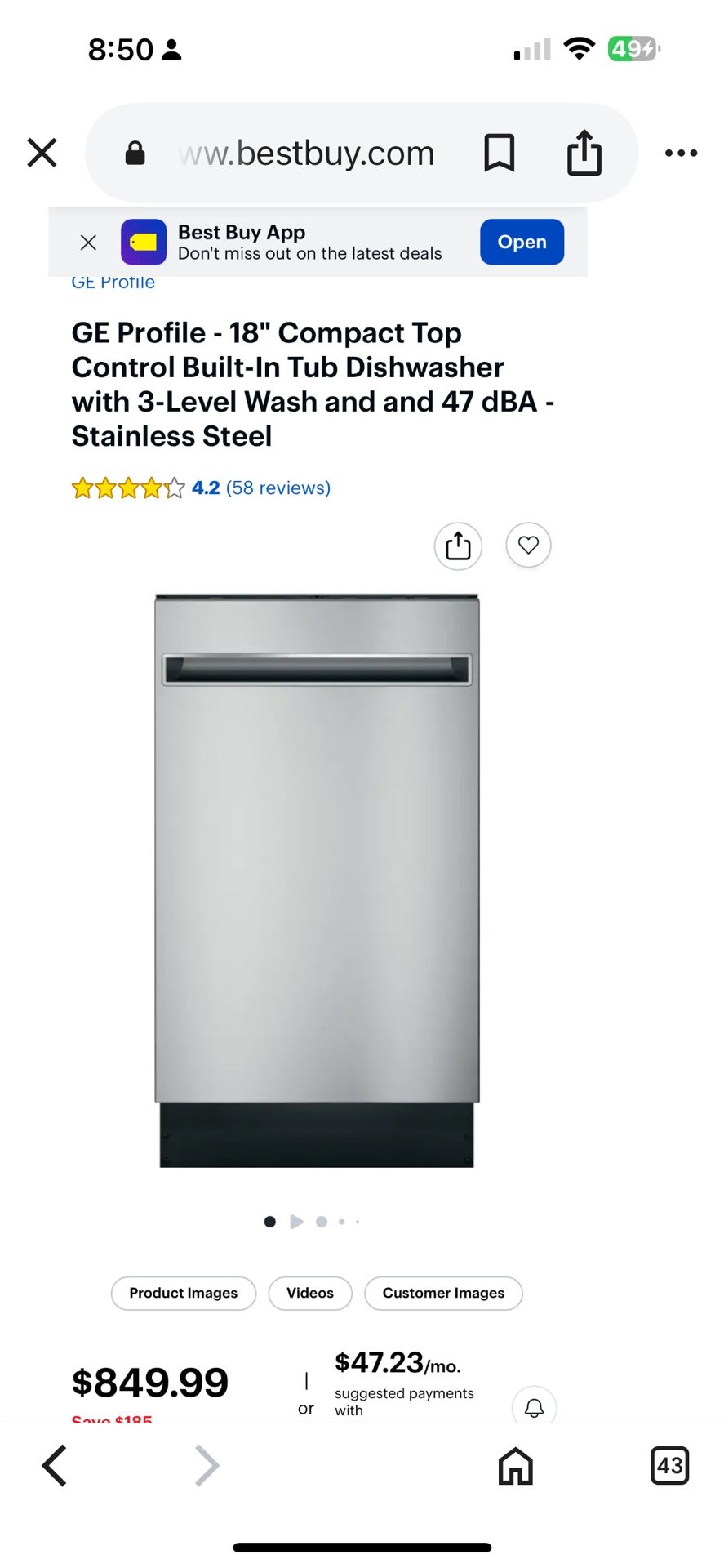 G E profile 18” Compact Dishwasher