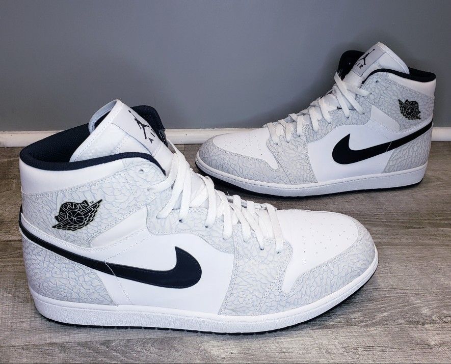 Size: 18 Men's Basketball Sneakers Brand: Nike AIR JORDAN 1 RETRO HIGH TOP 'WHITE ELEPHANT' EUC barely ever worn! Maybe worn once! More of a collector's piece! The Air Jordan 1 Retro High 'White Elephant' borrows a crucial design cue from the Air Jordan 3. The retro high-top sports a white leather upper with pale grey overlays executed with Jordan Brand’s iconic elephant print. Contrasting black hits appear on the sneaker’s various branding elements, including a leather Swoosh, ‘Wings’ logo on the lateral collar and embroidered Jumpman at the heel. ⭐Such a Rare Beauty to Find‼️✅ If you are a Size 18 in Men's, you are very Lucky to Find these here or you can make them a show piece in your Collection of Jordan's. Retails $540-$675 Various Prices Asking $500- plus shipping ⭐Reduced 12/21/21⭐