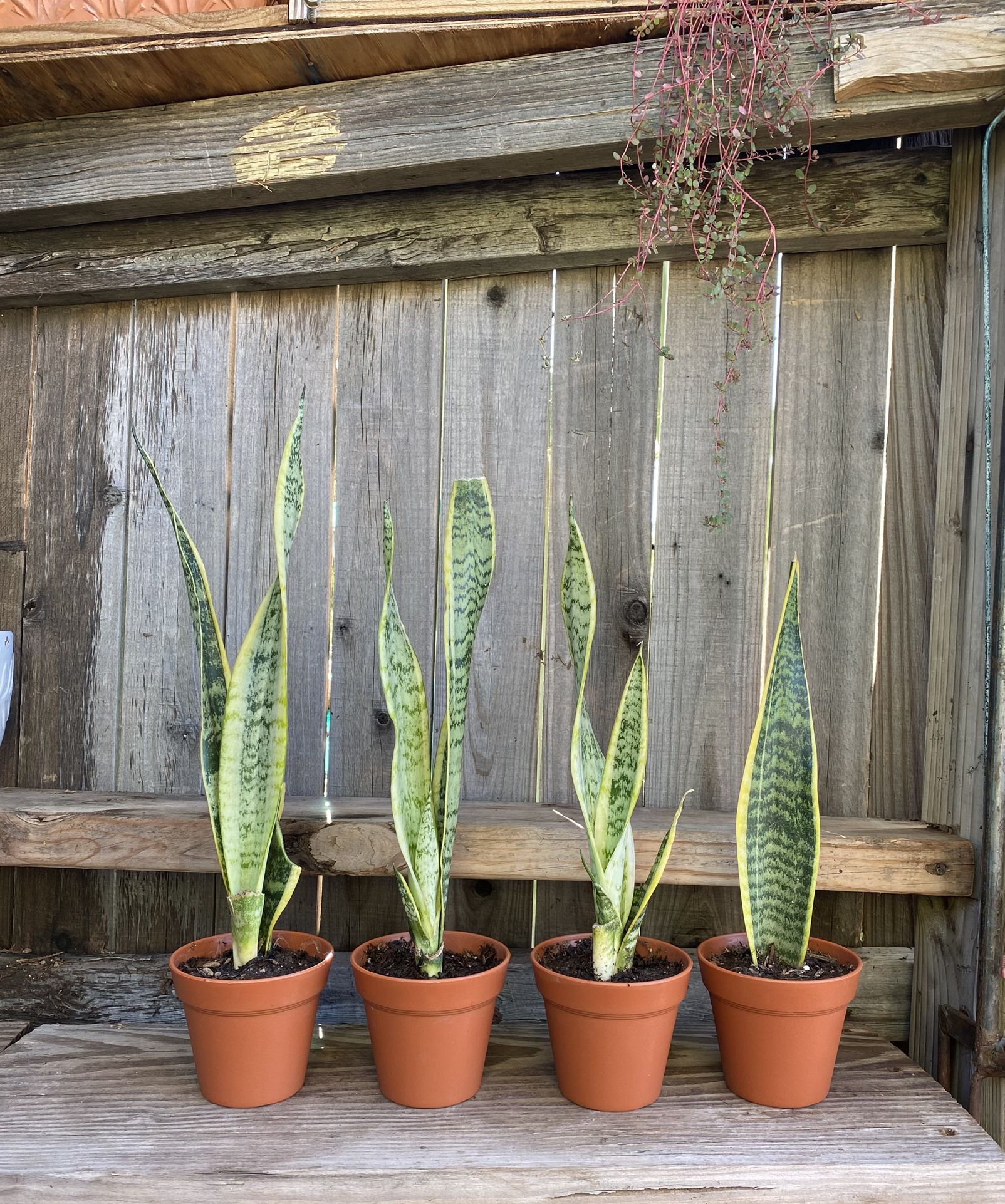 Small Mother-in-Law or Snake Plant This Plant Helps Remove Toxins From The Air! They Can Be Anywhere Inside the House (Never Direct Sun Light or Very Cold Areas) Small Snakes Plants $5 Each With 4” Plastic Pots with saucers plates Please Check My Other Offers Thanks!