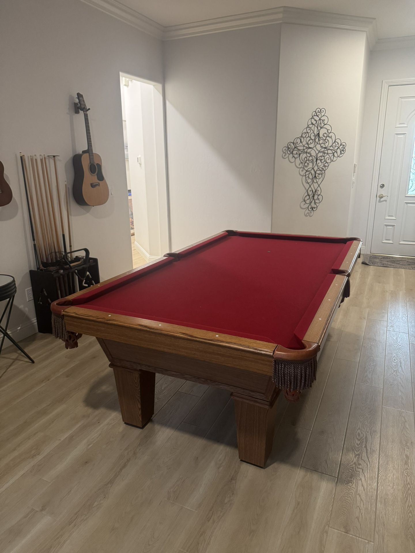 Solid hardwood, U.S.-made Olhausen 8 foot pool table: - Accu-Fast premium rubber cushions - 3-piece slate - Recently re-felted cloth - Excellent cosmetic and structural condition - Cushions are original & correct-spec - Rebound quality is still very good This is not an entry-level table and has been kept in great care. It is the buyer’s responsibility to handle all arrangements for a professional move. Located in SW Bakersfield.