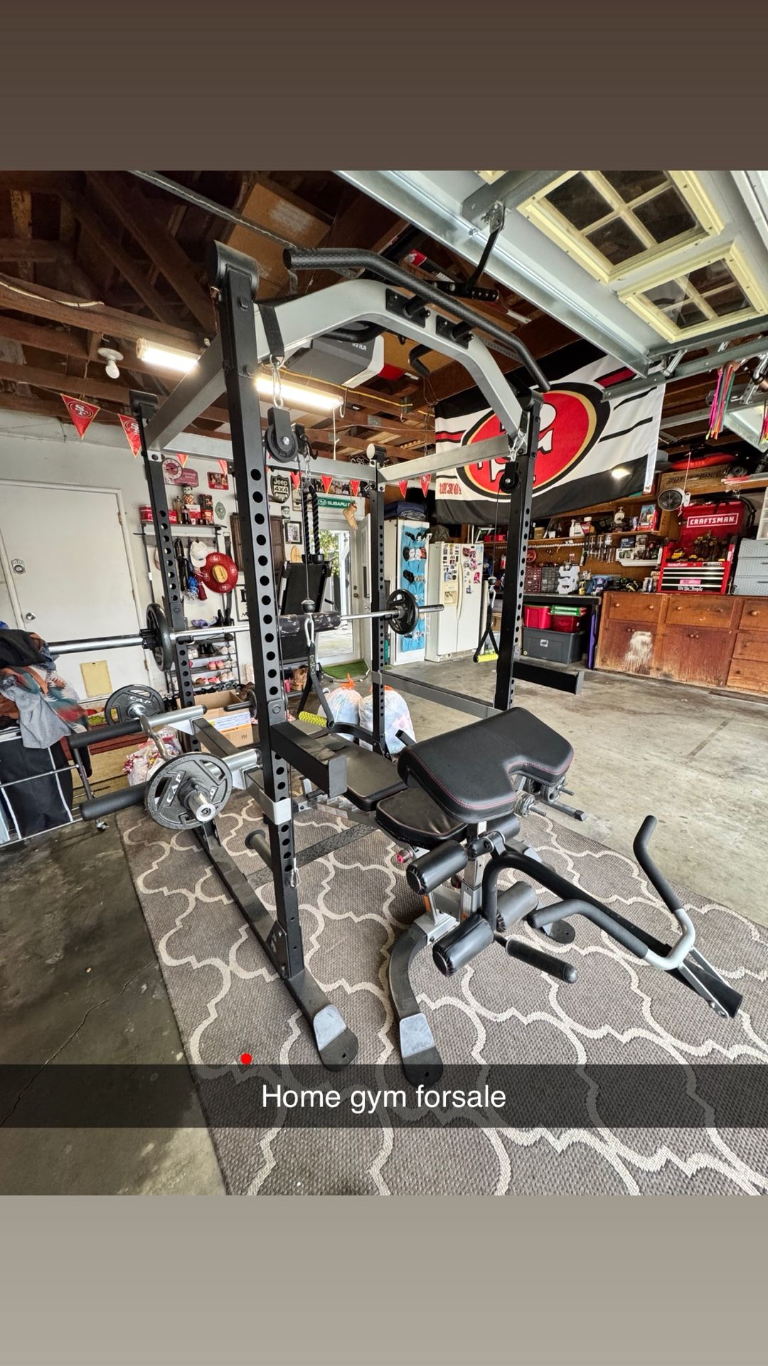 Comes with everything you see plates and plate trees Olympic bar weight belt tons of extra attachments asking 1300 obo