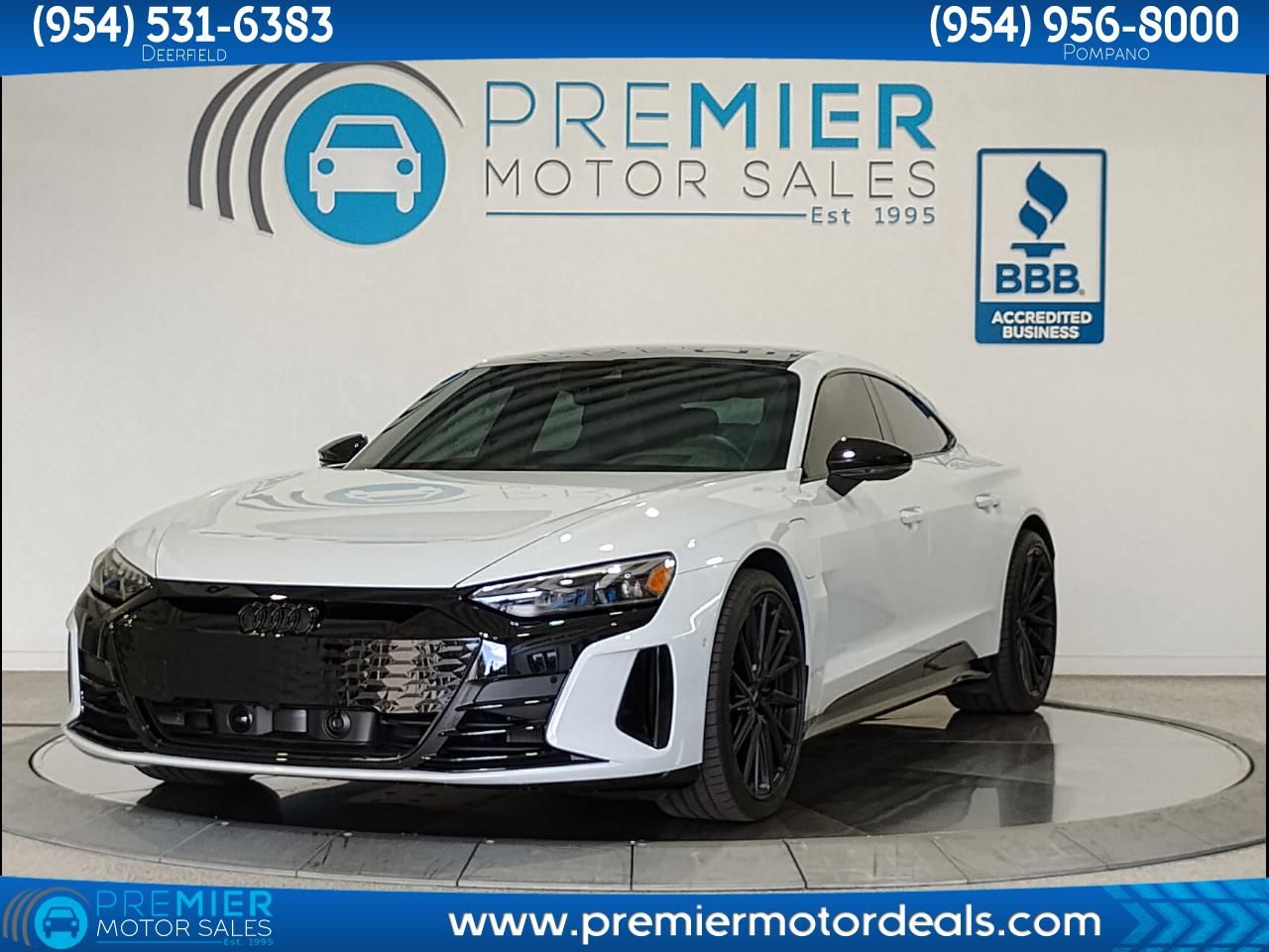 2022 Audi e-tron GT Premier Motor Sales 2022 Audi e-tron GT is a fantastic car, design-led electric grand tourer with serious performance and everyday usability.The 2022 Audi e-tron GT combines a wide, low stance with a long wheelbase and sculpted body lines to give it true sports-car presence. Its aggressive front end, matrix-style LED Laser headlights and coupe-like roofline create a sleek, modern look that immediately sets it apart from conventional EVs.DesignThe main people behind the 2022 Audi e-tron GT’s design are Audi’s Head of Design Marc Lichte and exterior designer Parys Cybulski. The interior design was led by Markus Däsch.Luxury, tech-focused interiorInside, the e-tron GT feels like a high-end sports lounge, with a driver-focused “cockpit” layout and premium materials throughout. A 12.3-inch Audi virtual cockpit display and 10.1-inch MMI touch screen are angled toward the driver, giving an immersive, high-tech feel without being cluttered.Electric performanceWith dual electric motors and Audi’s electric quattro all-wheel drive, the 2022 e-tron GT delivers around 522 hp, instant torque and a 0–60 mph time of about 3.9 seconds, giving sports-car acceleration with smooth, silent power. A sophisticated two-speed transmission and adaptive air suspension provide both strong straight-line performance and refined long-distance comfort.Range and everyday usabilityThe 2022 e-tron GT offers an EPA-estimated range of about 238 miles on a full charge, making it easy to use as a primary daily vehicle. Fast-charging capability and intelligent route planning with built-in navigation help make longer trips simple and stress-free.Matrix LED headlights (Laser)The “laser” in the front of a 2022 Audi e-tron GT is part of the optional Matrix LED headlights with Audi laser light. It is not a visible laser beam, but a special high-beam module designed to extend visibility at higher speeds.The laser light gives a brighter, longer and more focused view of the road ahead on dark highways, helping the driver see further without needing aftermarket lights. It works together with the Matrix LED system, which selectively shades parts of the beam so it can light up the road without dazzling oncoming traffic.Comfort and safety featuresAs a true four-door grand tourer, the e-tron GT provides comfortable seating for up to five, with supportive sport seats and generous legroom up front. Available driver-assistance features can include adaptive cruise control, lane departure warning, forward collision mitigation, night vision, and remote parking assist.0–100 mph (approximate)Independent instrumented testing has recorded about 8.5 seconds from 0–100 mph for the e-tron GT.Torque 2022 e-tron GT: About 472 lb-ft (640 Nm) of torque available with overboost from its dual motors.GUARANTEED FINANCING AVAILABLE FALAMOS PORTUGUES / SE HABLA ESPAÑOL We offer financing for those with less-than-perfect credit. Online prices are based on cash deals. Cash specials change frequently and are valid only on the day of publication. Prices do not include taxes, title fees, or dealer fees. Premier Motor Sales – "A better way to buy and sell used cars" since 1995. We are TrueCar Certified and Autocheck Certified, and BBB Accredited with an A+ rating. Each vehicle we select goes through a rigorous process before hitting our showroom. We have 2 locations to better serve you: Pompano Beach (954) 956-8000 Deerfield Beach (954)-531-6383 It is the customer’s sole responsibility to verify the existence and condition of any listed equipment. While every effort has been made to ensure the accuracy of the information, the dealership is not responsible for misprints on prices or equipment. We welcome pre-purchase inspections. Web/Call: [ https://9549568000.com ]