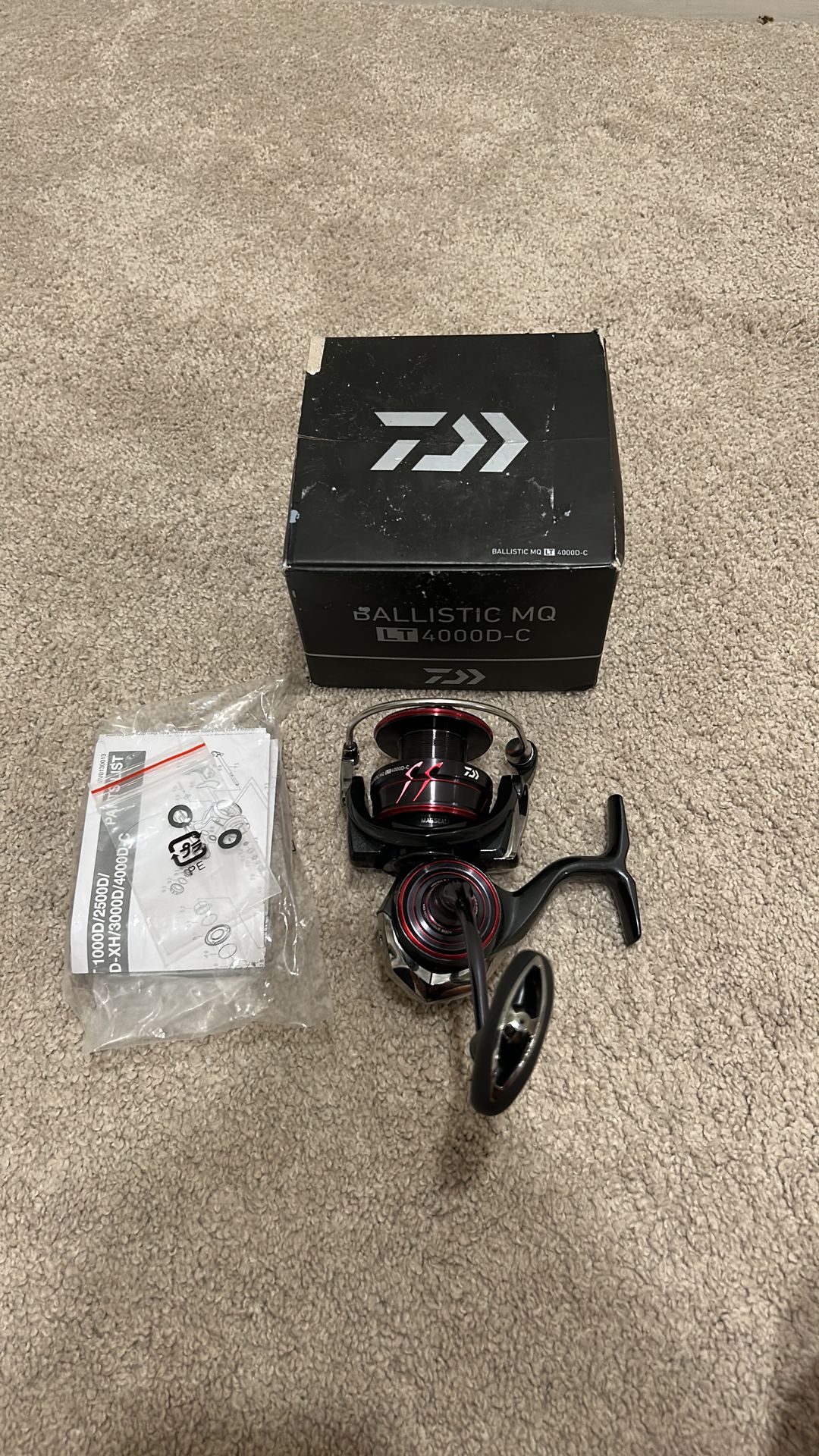 Reel is in great condition and was professionally serviced by Daiwa last week. Ballistic MQ LT 4000D-C Bearings: 8+1 (2CRBB, 6BB, 1RB) Gear Ratio: 5.2:1 Retrieve Line Per Turn: 32.5” Weight: 8.1 oz MONO: 14/250, 20/160 J-BRAID: 20/280, 30/200 Drag: 26 lb Retail: $229.99