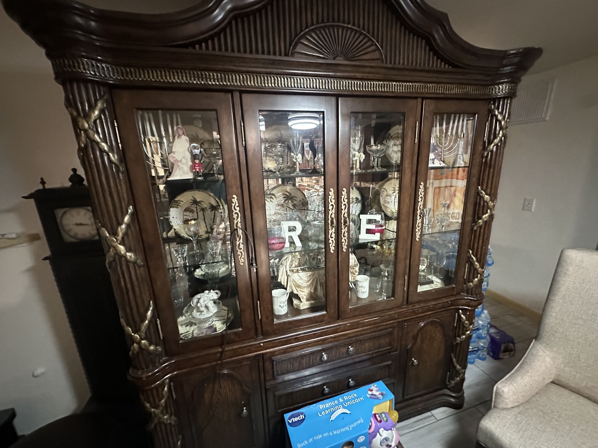 This showcase is like new very well taken care of it made of real wood and the inside is all glass with mirror comes with drawers and cabinets at the bottom Grandparents took very good care of showcase. Complete with all shelves and glass in mint condition It’s a steal for price and quality