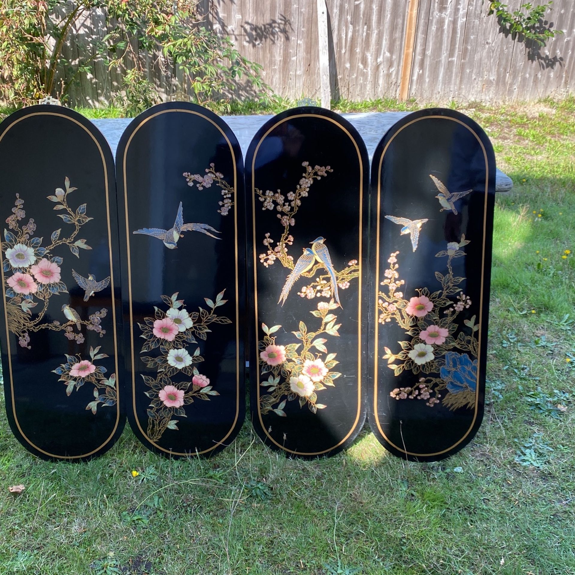 Nice hand painted coffee table set includes 4 pieces wall paints. End table has scratches as shown in the pic. Entry-table, and coffee table are in good condition. Asking $100 for all or: Wall paints $25 each Coffee table and entry table $20 each End table $10 (Entry-table is sold)