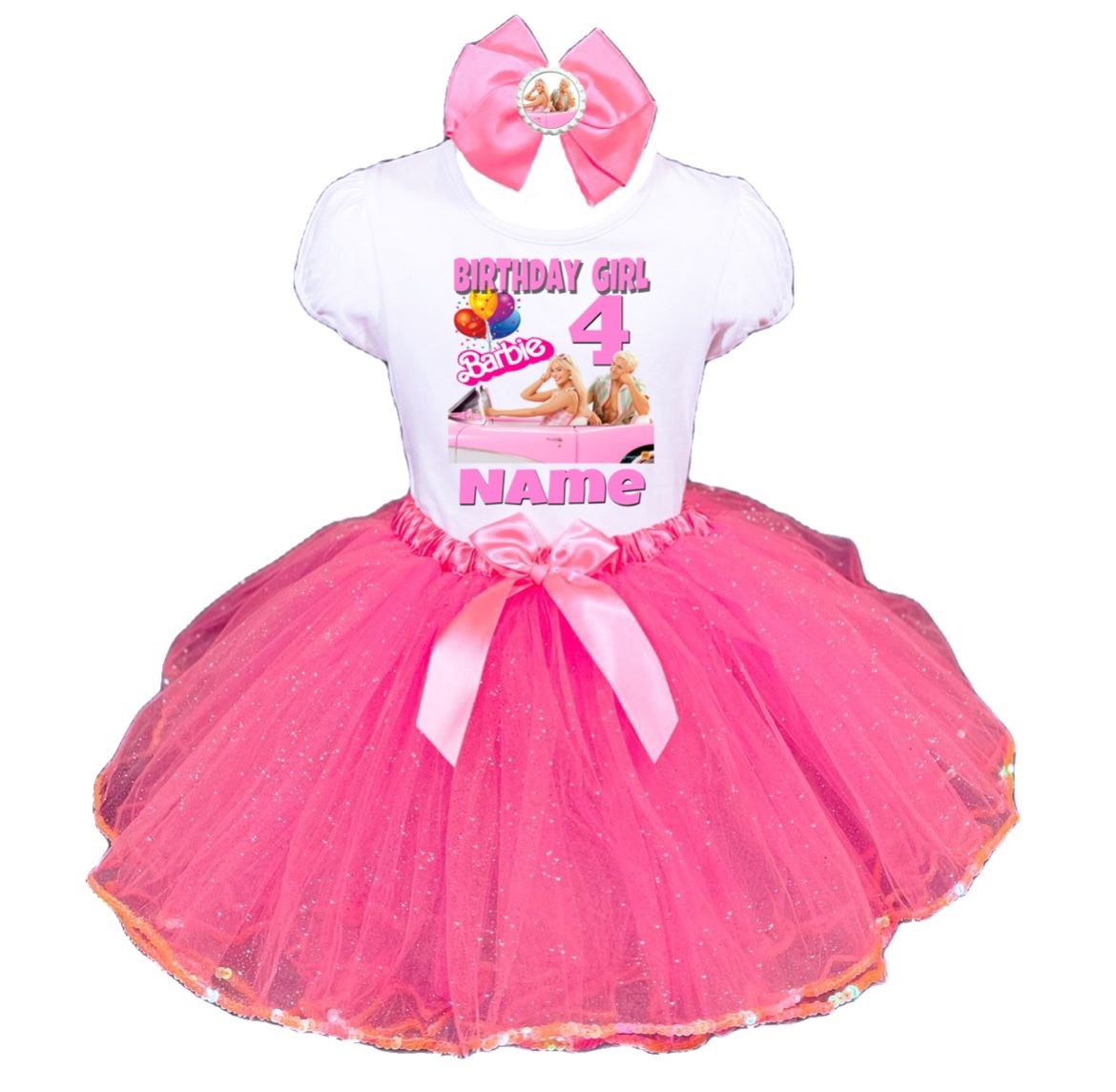 Barbie 4th birthday outfit personalized with name and number