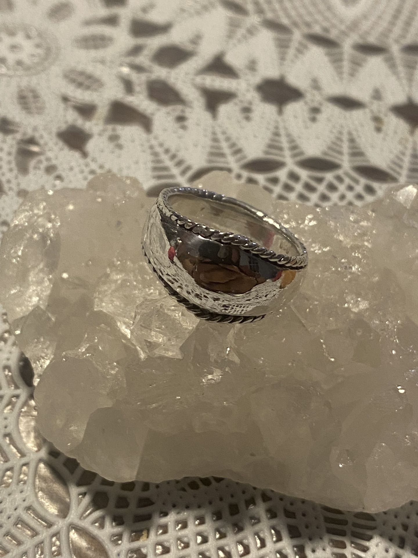 This is a beautiful vintage Sterling silver ring. Approximate size is around 5-6. Let me know if you have any questions. Se habla español