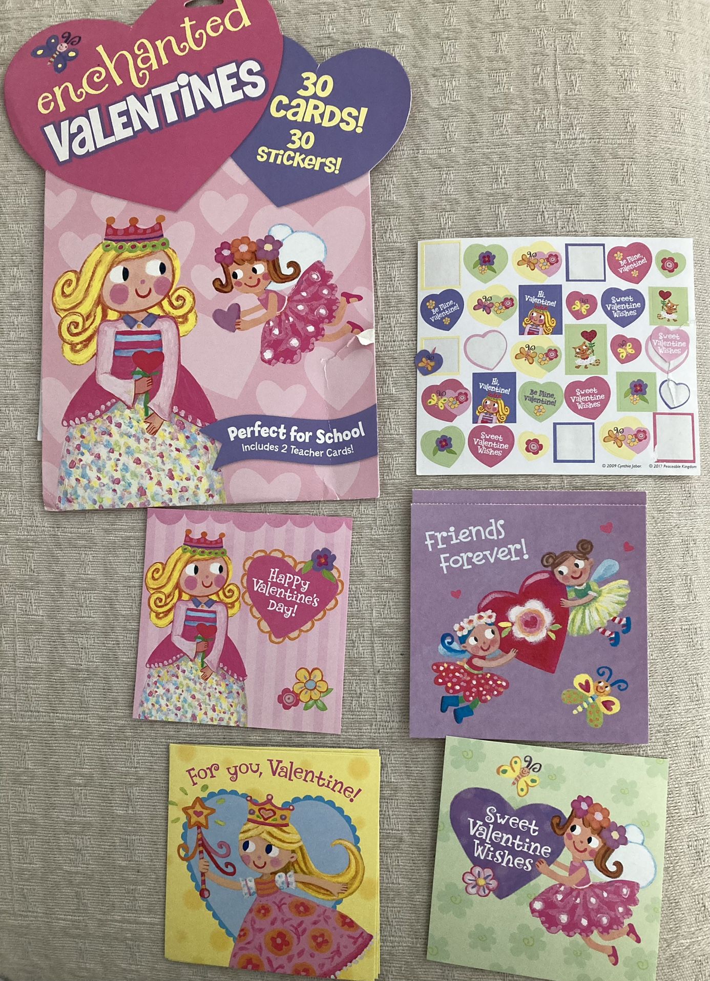 I am selling a Open Set of 7 Enchanted Valentines Day Cards for $1. A few stickers are missing. Pickup only. Located in Lincoln Park near Ashland and Fullerton.