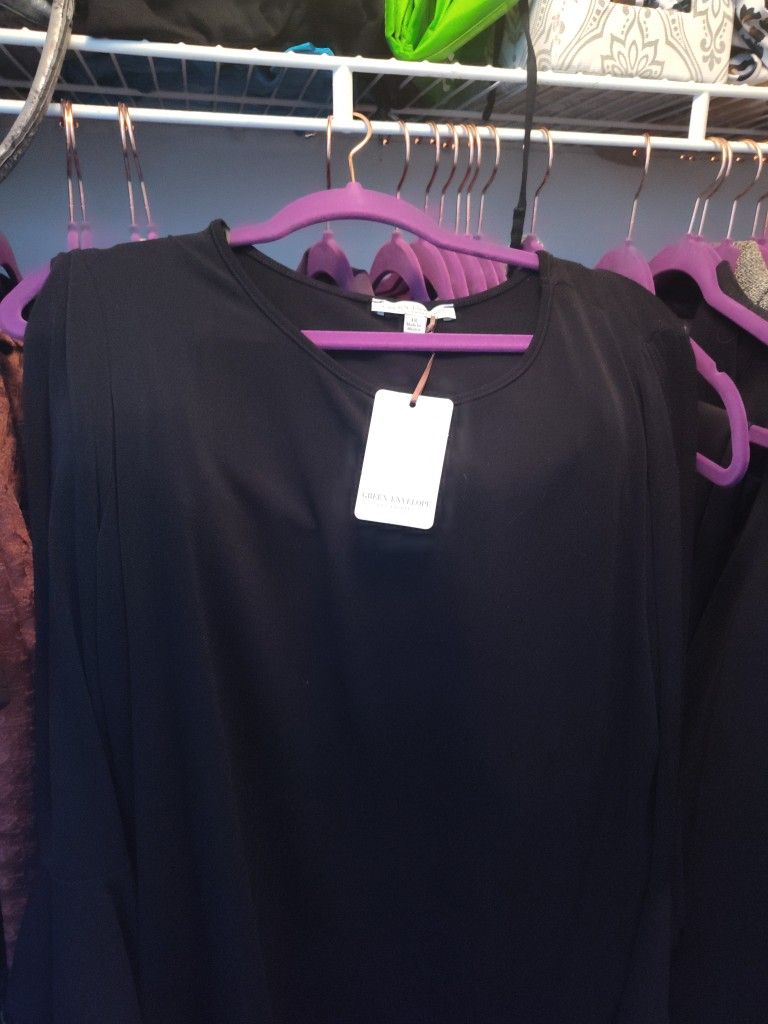 Black blouse, never worn. Lovely openwork detail on both sleeves. Made in Mexico. Ladies 1X. $5 cash or zelle. In Miramar.