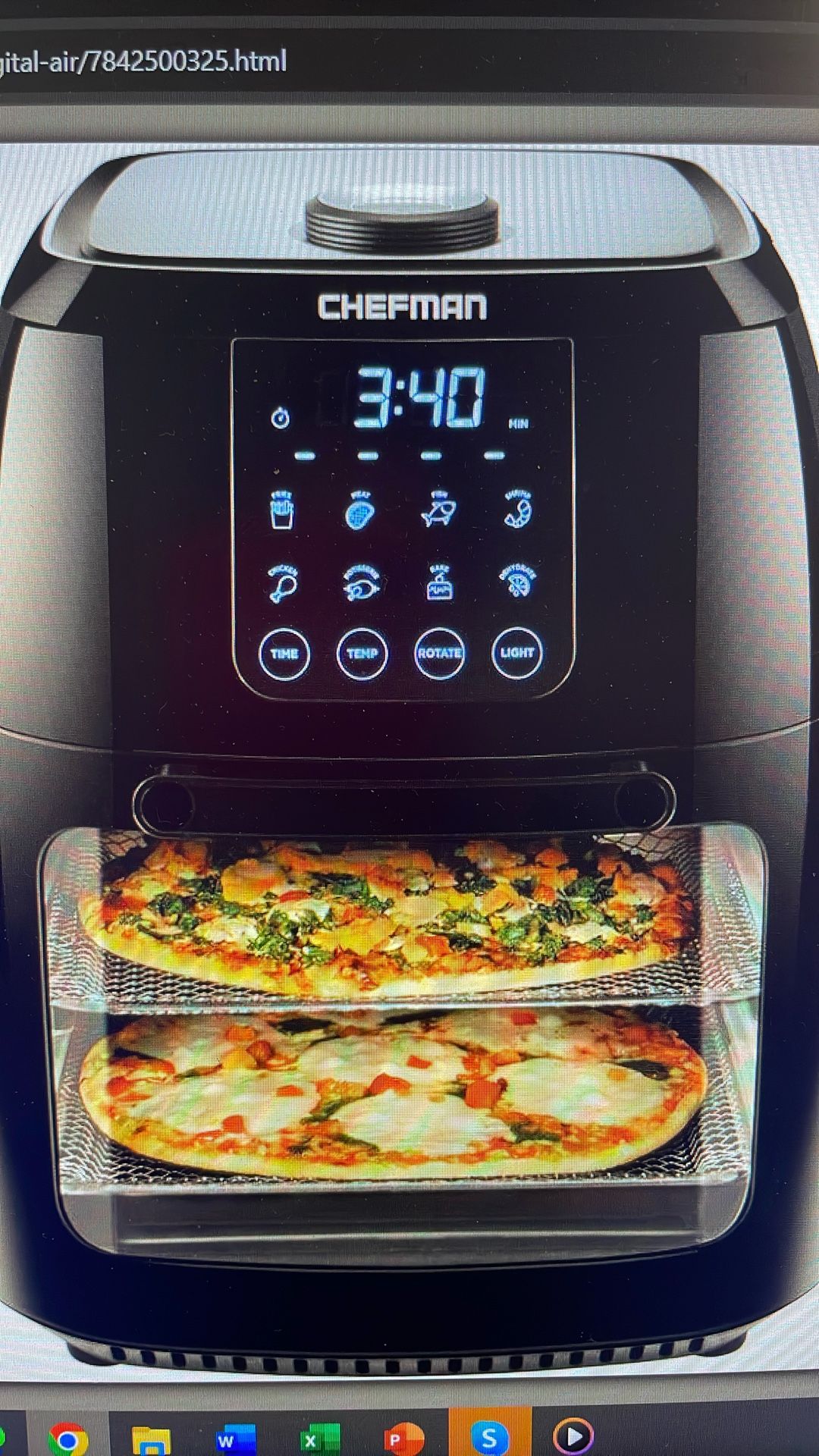You're in luck! It's still available! When you write, please let me know what day and time you would like to stop by between 11:30 a.m. and midnight -- and whether in my driveway in clear view of nine other houses, or the Wheaton Police Department vestibule. Because of massive data harvesting on this site, I do not text or make phone calls. I reply only to emails through this link and to no other. I do not reply to, "Is it still available" because that generally indicates spam. Used only one time. Just like brand new. Look at the photos yourself and be the judge. Chefman 6.3 Quart 4-In-1 Digital Air Fryer does quadruple duty also as a rotisserie, dehydrator, and convection oven. With its extra-large family size, it provides enough cooking/frying space for the whole family! Features include eight touch screen presets, BPA-free components, auto shutoff, and more, this is the air fryer that Consumer Reports ranks at the top! How can 43,359 Amazon reviews be wrong?! Sells on Amazon for $124.58 plus sales tax totaling $135.48! Why pay full price? This air fryer was lightly used and is very clean. our family tried it out and decided we wanted a smaller unit since usually only one or two family members used it at a time. However, we loved it because of the tray design which was much easier to use (to cook with) than the basket design. After all, how do you cook a pizza in a basket? Answer: you don't! Priced to sell, get it now!