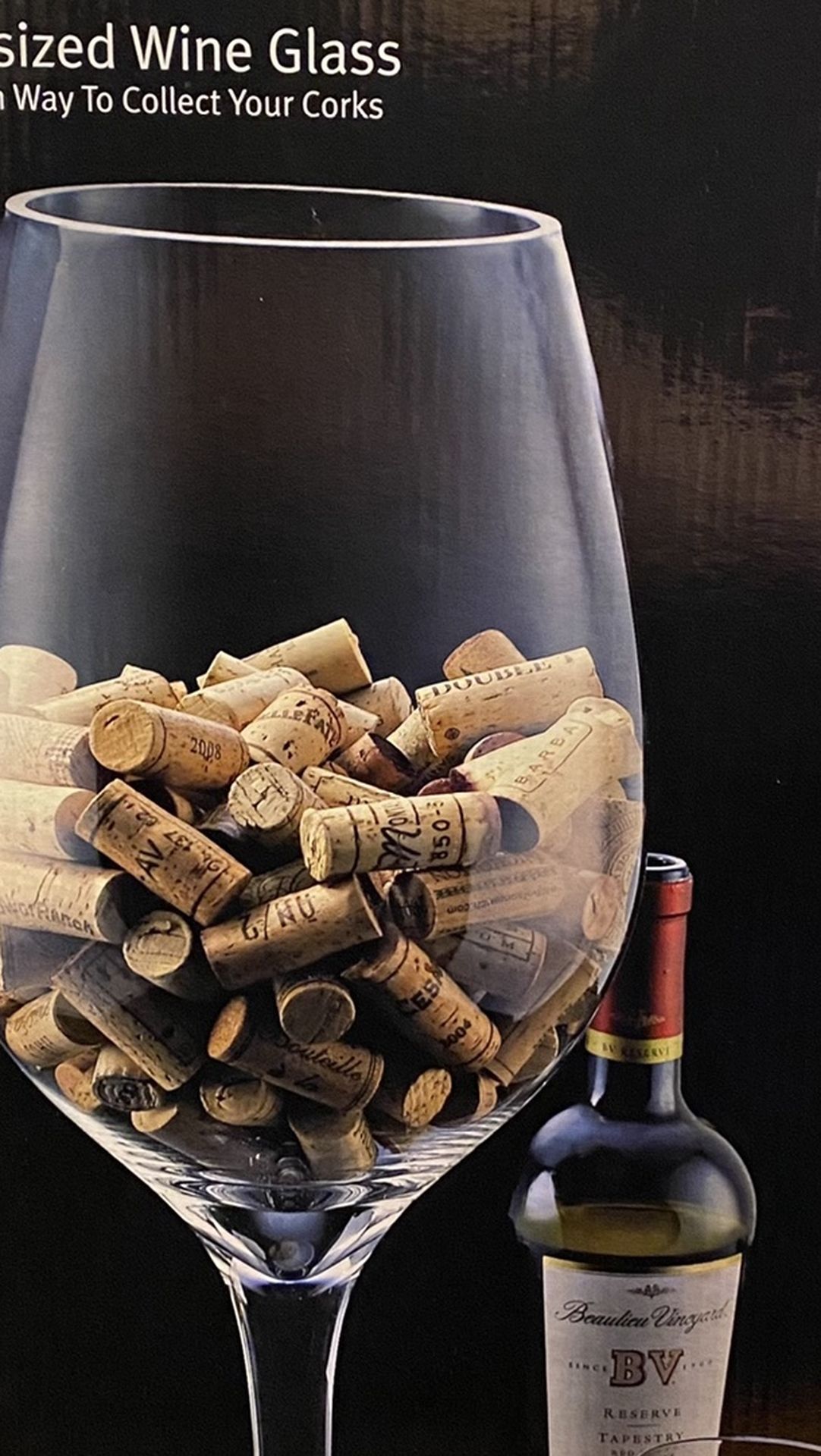 ⚫️Wine Enthusiast Oversized Wine Glass 🔴Stylish Way to Collect Your Corks ⚫️Fill it Halfway with Ice to Chill Your Bottle of Wine (see picture #3) 🔴Fun Place to Keep Candy, Flowers & More ⚫️Makes a Great Gift for Wine Lovers