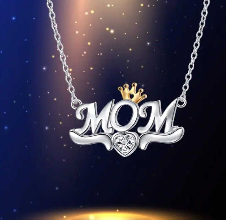 Queen Mom Silver Tone Heart Necklace