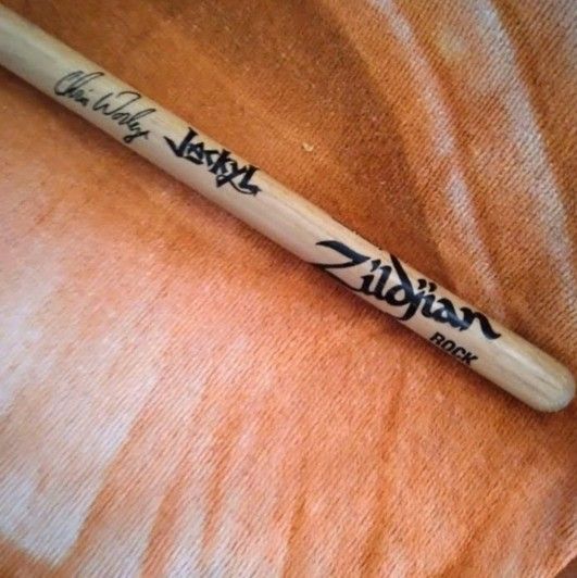 DEEP-DISCOUNTED to $20 *Music & Memorabilia* POP-UP store item Excellent condition, full-size original 1994 drumstick from JACKYL drummer (who's still in the band). Includes band & maker logos, stamped CHRIS WORLEY autograph. As shown in 2 photos. Ships via USPS, OR Pick up by appointment.