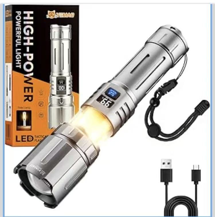 High Lumens Flashlights Rechargeable with 8 Modes,Tactical Flashlights with Warm Camping Lamp,Zoomable LED Bright Flashlight with 5000mAh,EDC Flashlight for Home,Camping,Travel,Emergency