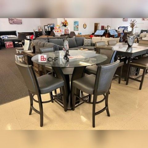 5 Pc Glass top Counter height round dining table set