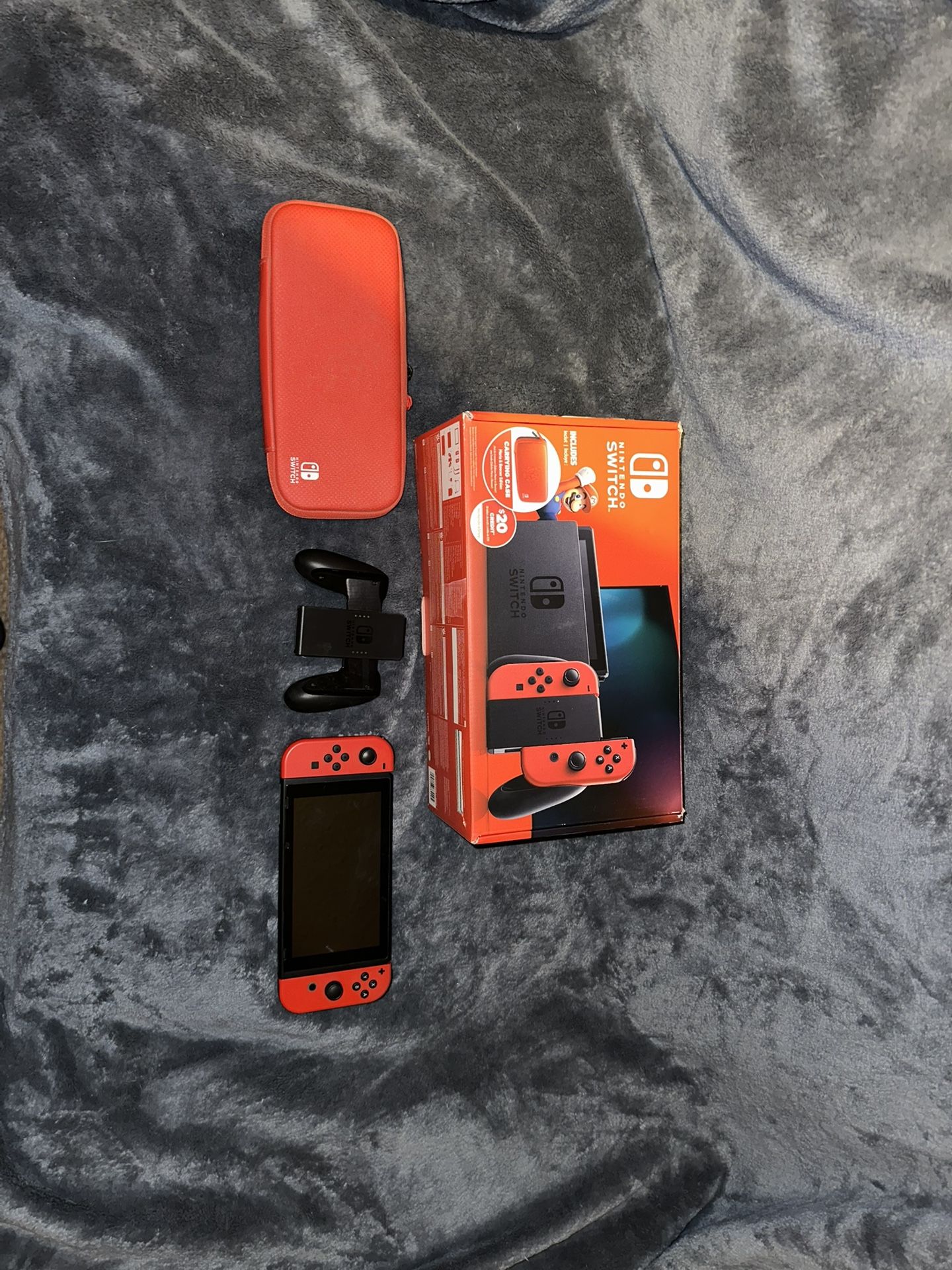 Lightly used Nintendo switch. It comes with screen protector, game carrying case, and 128 micro sd card.