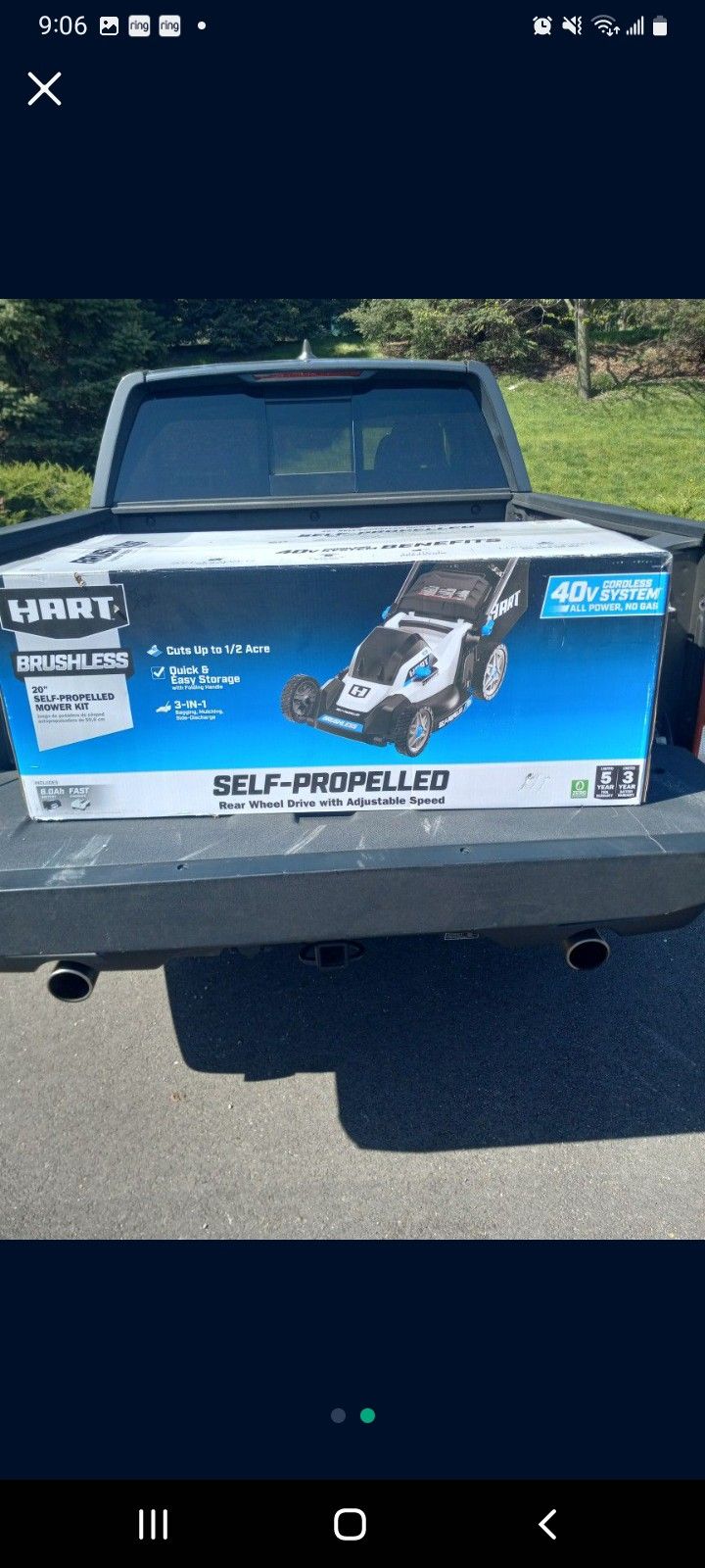 New HART 40v 20in Self Propelled Mower Kit for sale in Aurora Illinois. In original box. Unused. Battery and Charger included. Serious buyers only. Lowball offers will be ignored.