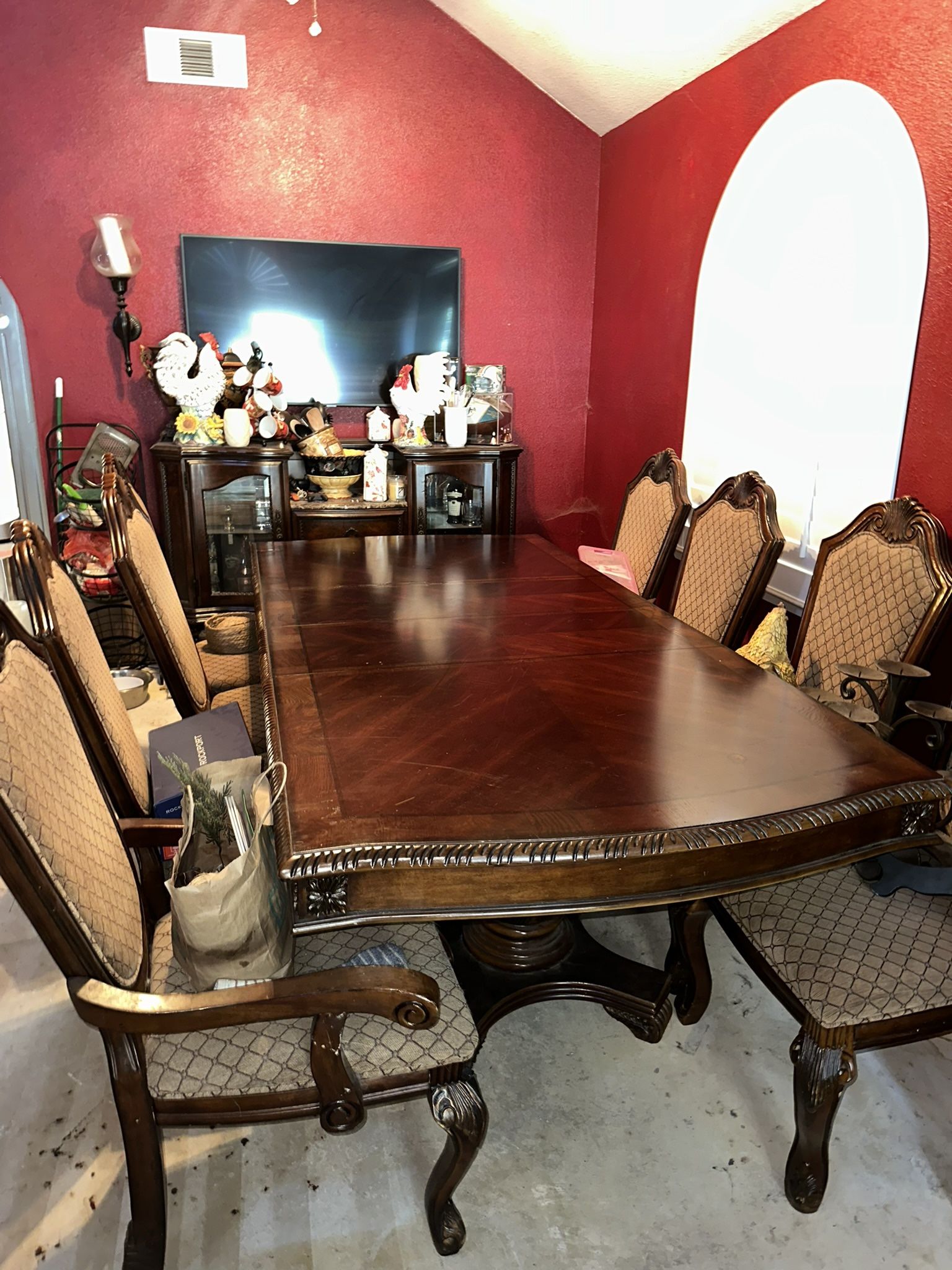 Price is negotiable, some scratches on the table. Trying to get it out fast:) Long Table, 8 chairs, Good condition