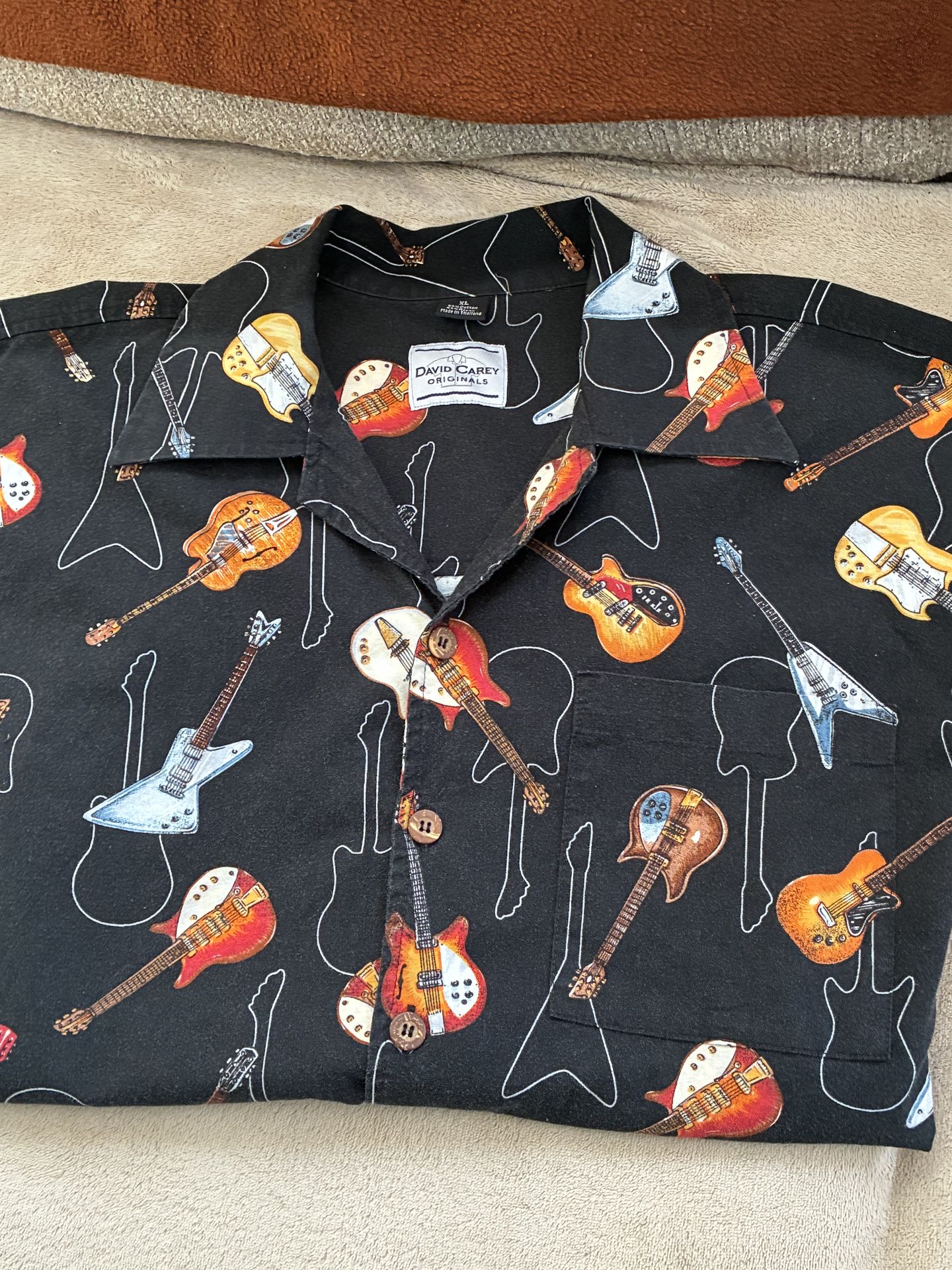 This is an original David Carey Hawaiian style short sleeve shirt with all the buttons! It is made from 55% cotton and 45% rayon mixture for a very cool and comfortable feel and fit! ( It gets hot on stage!) The size is an XL and the shirt is in great condition for being used without any stains fading or pulls! Comes from a smoke and pet free home!