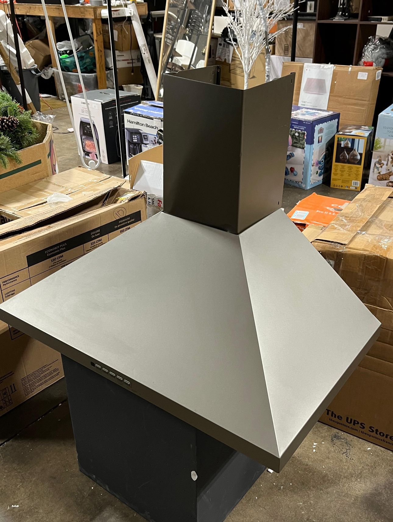 GE Wall-Mount Pyramid Chimney Range Hood with Dual Halogen Cooktop Lighting