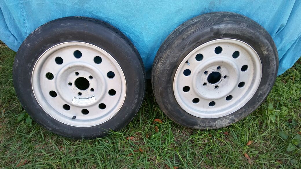 Aluminum wheels 16" x 4.5". Lug pattern is 5 x 4.5. They are originally Lincoln spare tire wheels, but would make perfect pizza cutter wheels for front of drag car. Selling pair for 150.