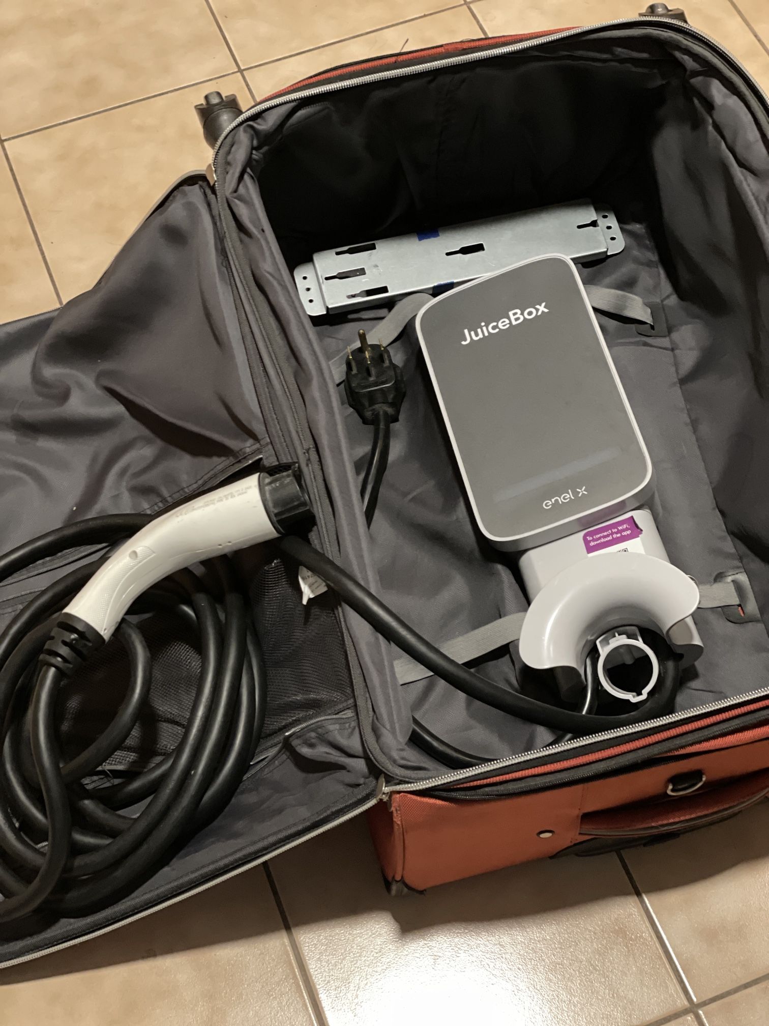 Used, great condition. Currently in storage. WiFi-enabled 40-amp smart EV charging station (Level 2 EVSE) with 25-foot cable & integrated cable management Up to 7x faster charge: 40A / 9.6 kW WiFi connectivity with smartphone app and online control dashboard Dynamic LED lights show power, connectivity, and charging status, built-in cable rack, security lock