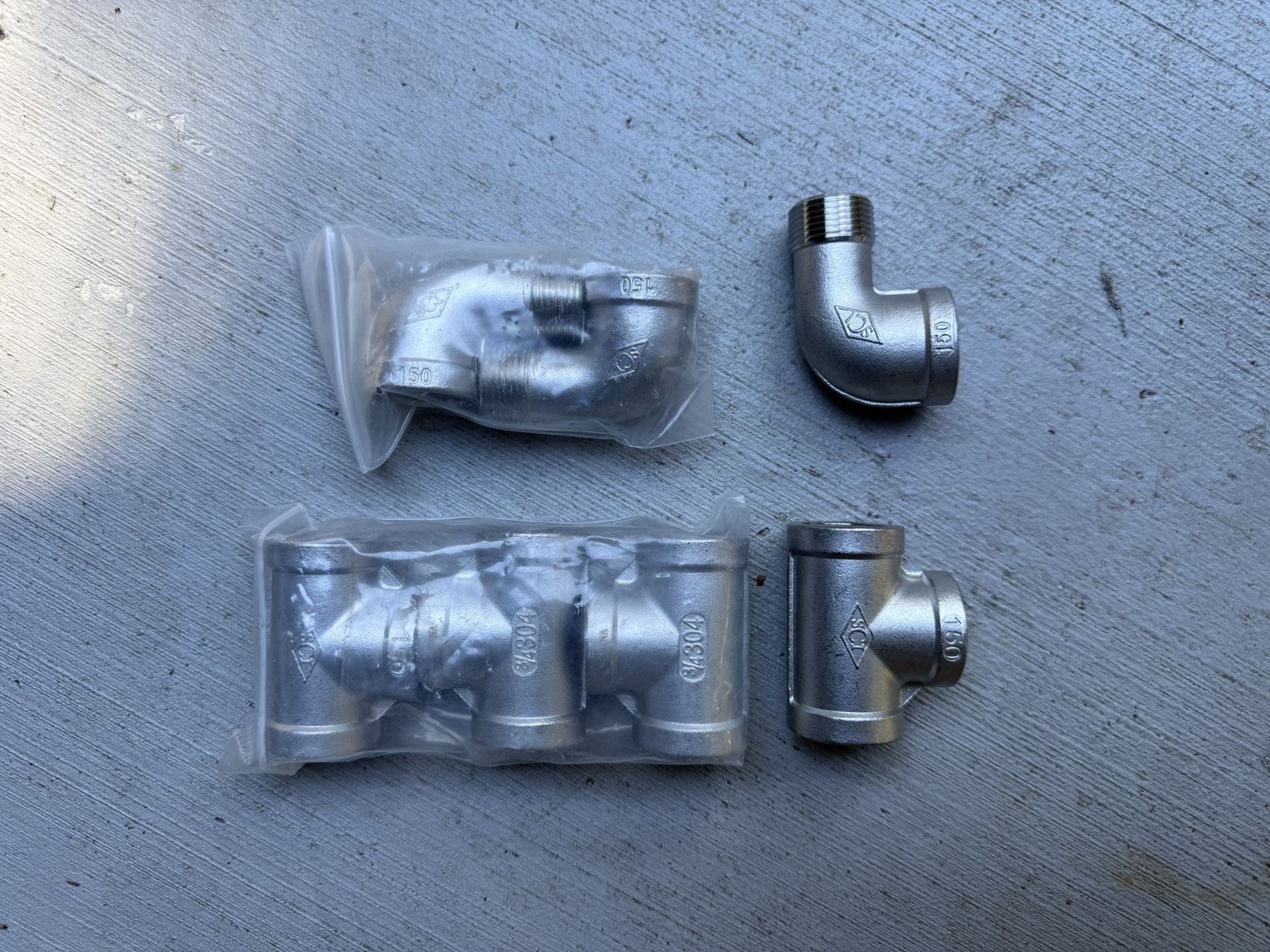 I have a bunch of 3/4 stainless steel tees and street elbow 90s for sale. 4 bucks a peice