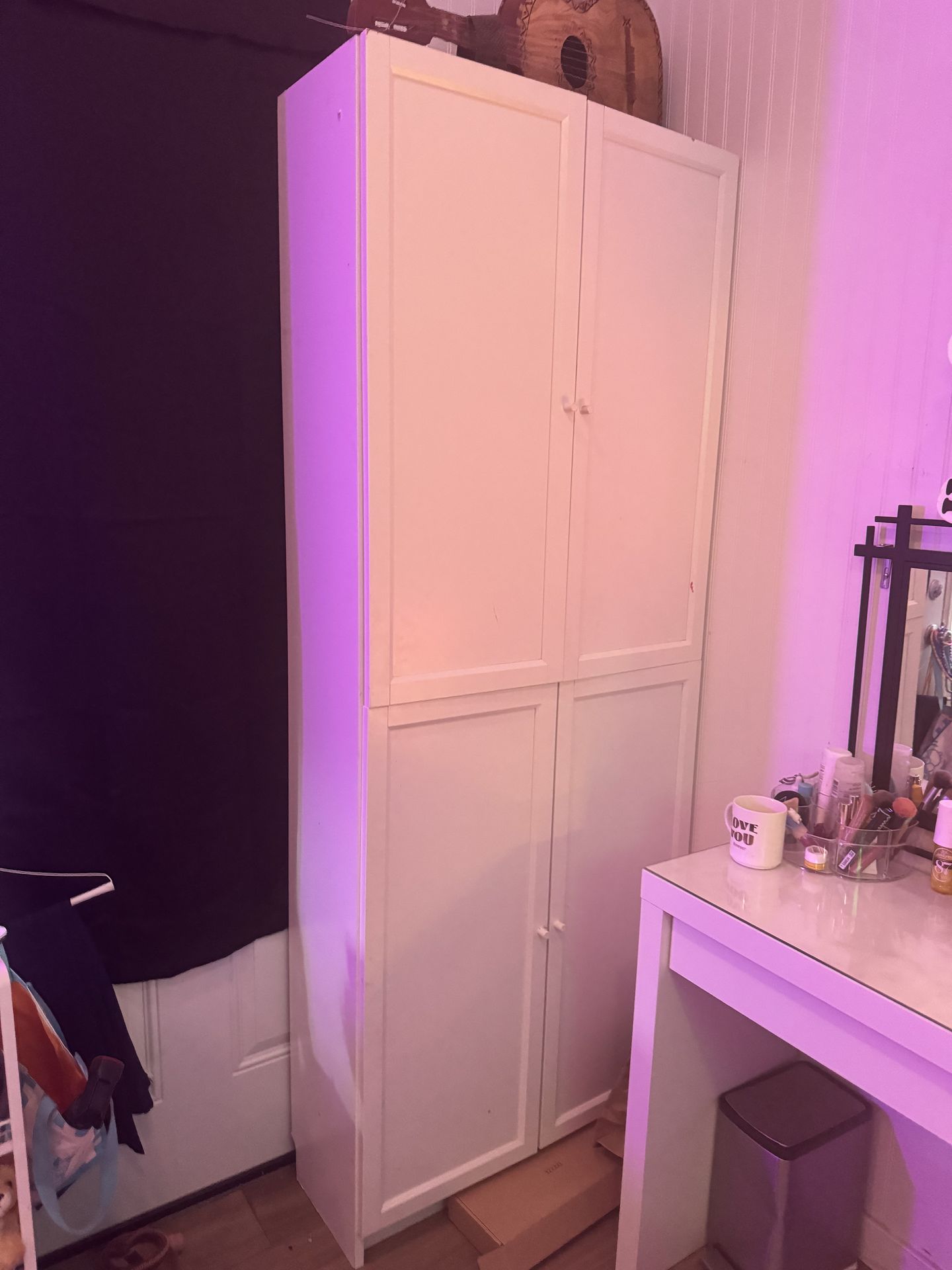Wear and tear but still good. Nice white dressers. Two in good condition. One has a few screws for a repair. See photo.