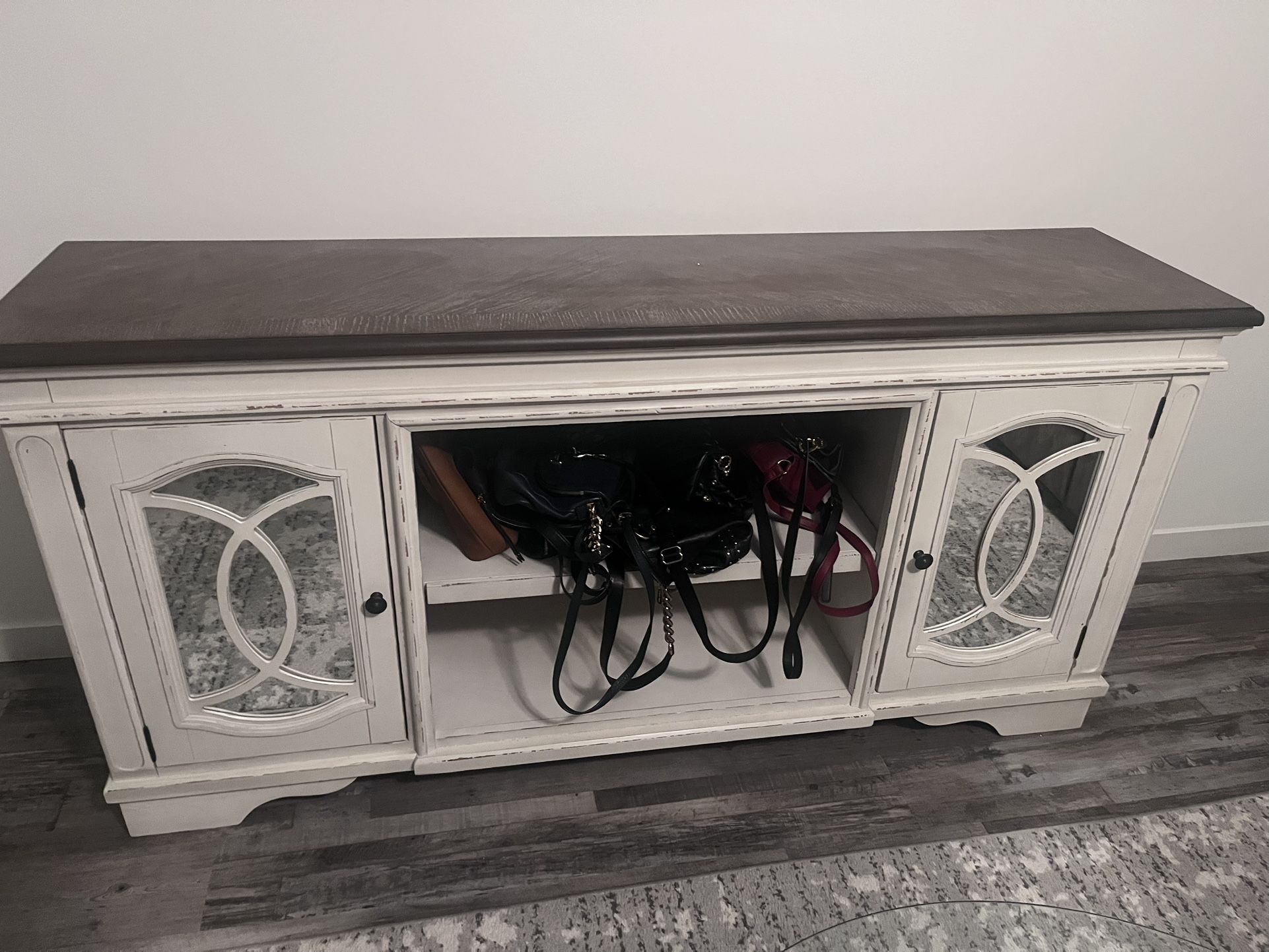 Fairly new entertainment center in pristine condition. No kids, no dogs. Asking for $500, my loss your win. You can easily fit a 70” tv.
