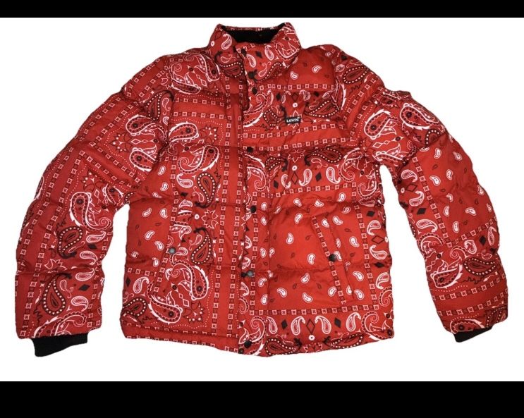 Mens Levi's Red Paisley Bandana Puffer Jacket Coat Size Small S NWT