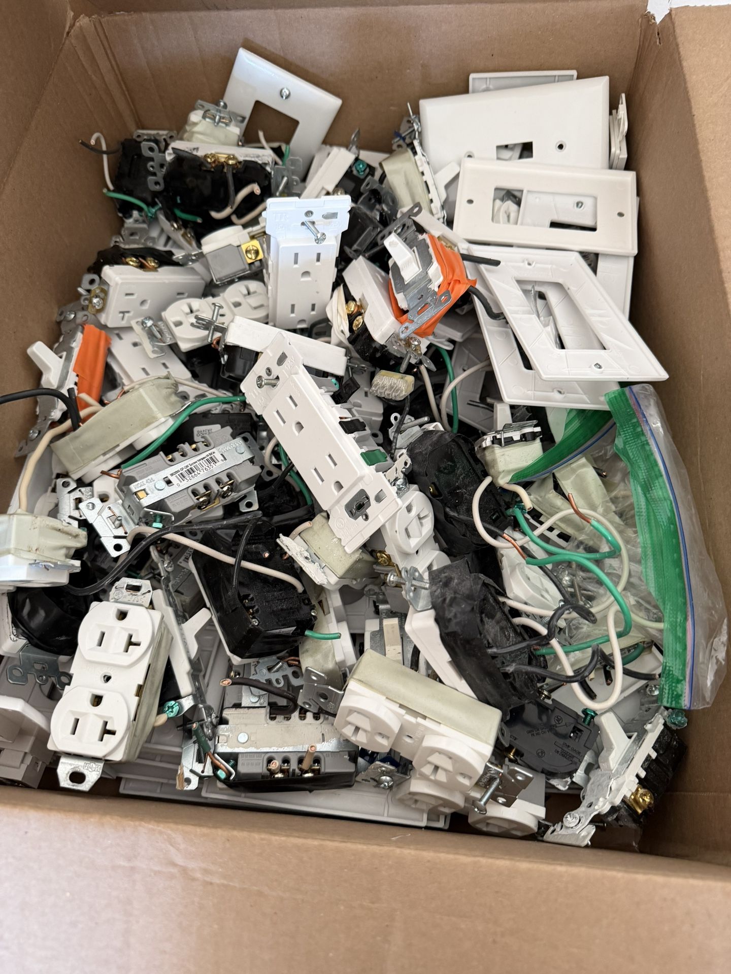 A box of wall sockets cover plates all in working condition. Selling the entire box of approximately 50 sockets.