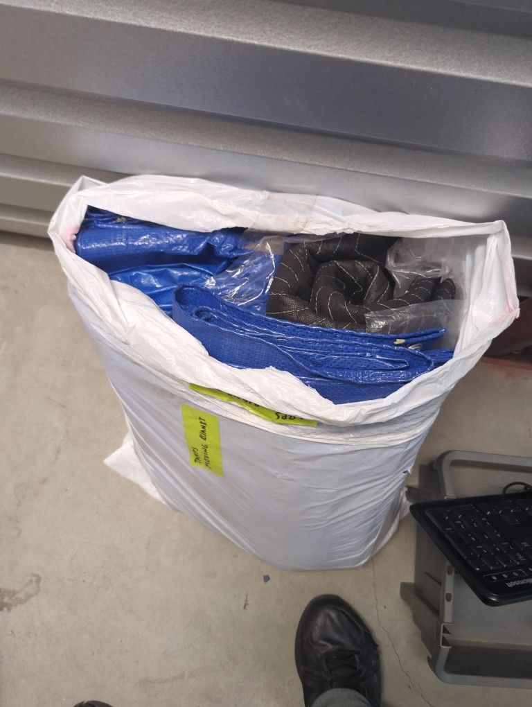 -Tarp and moving blanket -Perfect to cover some valuables outside -Not sure the size -giving a discount for the blanket and tarp