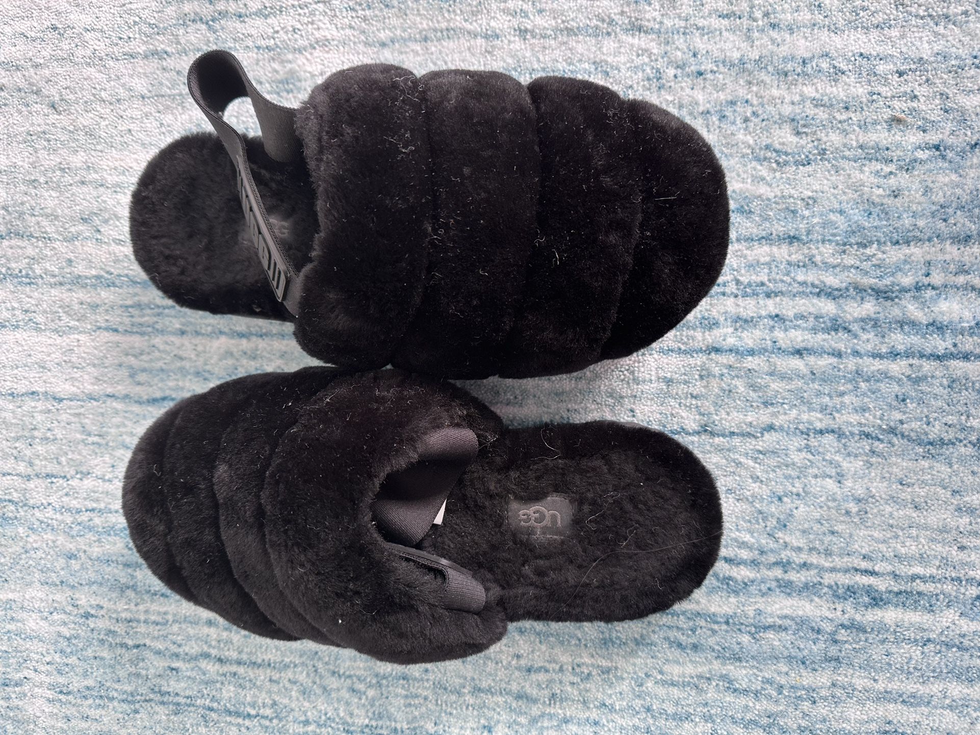 Uggs black slippers. Worn once inside only. Like New.