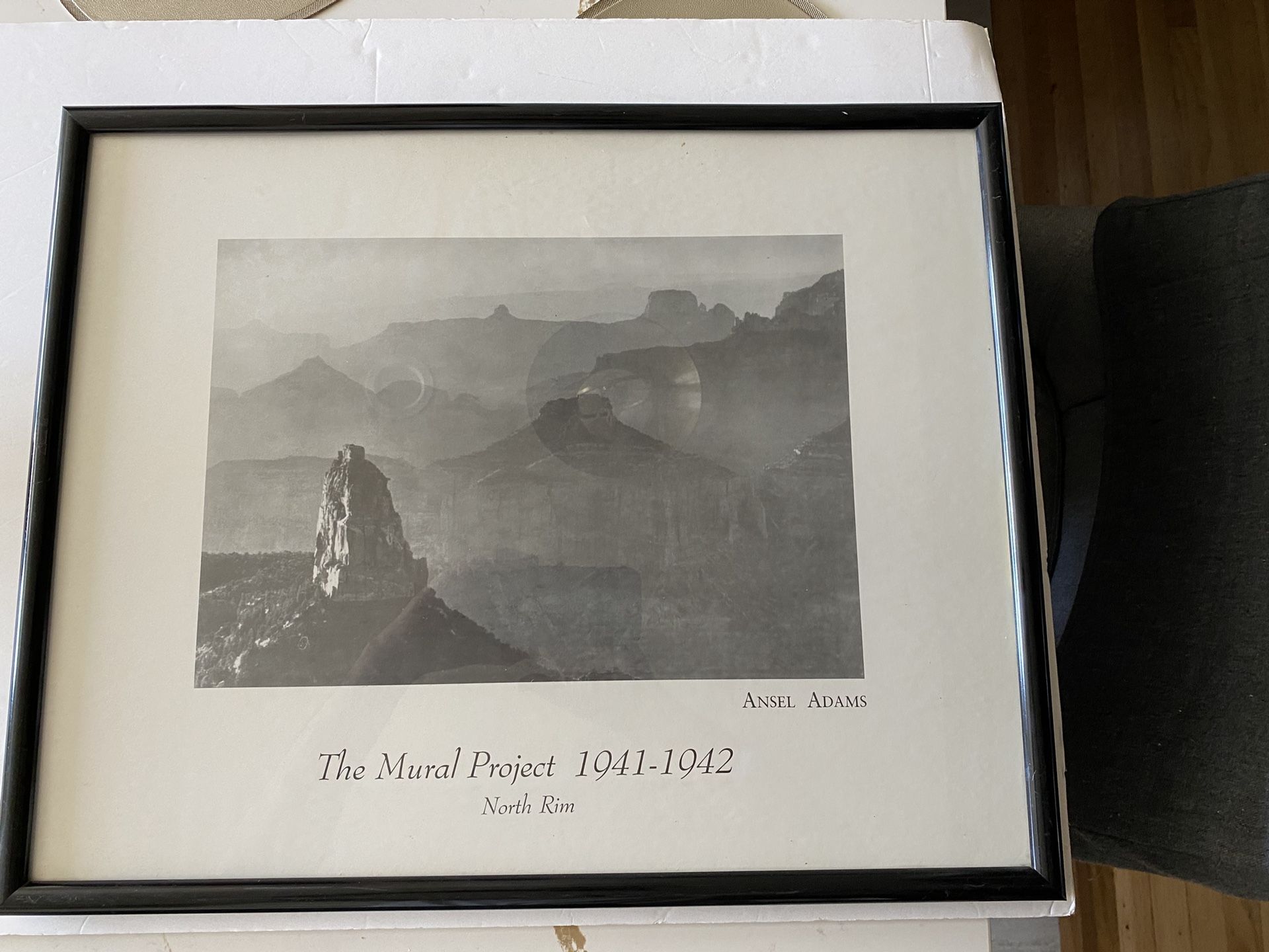 Ansel Adams poster in plastic frame 21in x 17in, includes frame