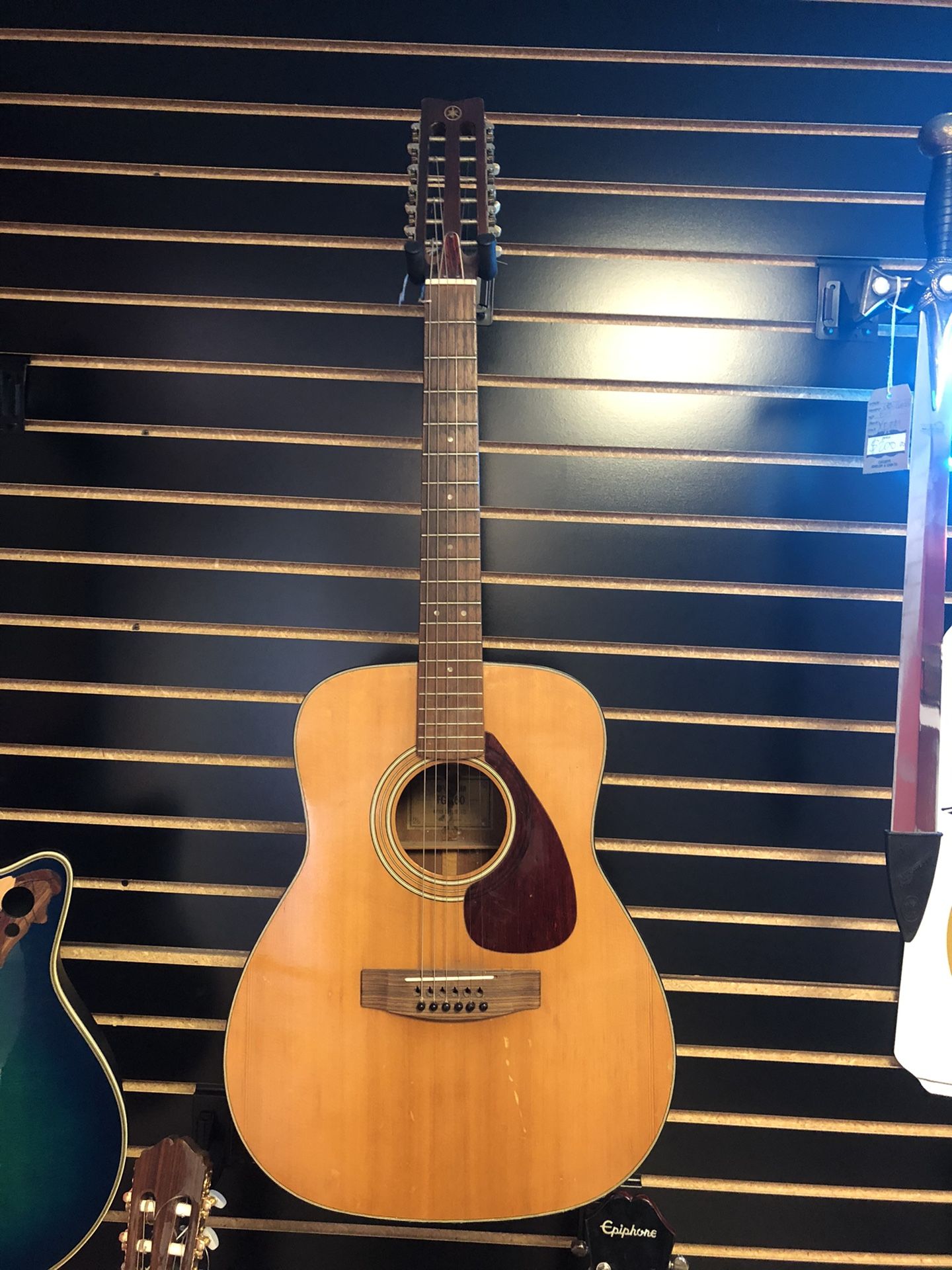 Yamaha FG260 12 string guitar with case. Made in Japan. It is pre owned but still in good condition neck is straight with no cracks. Minor dings from normal use missing 6 strings