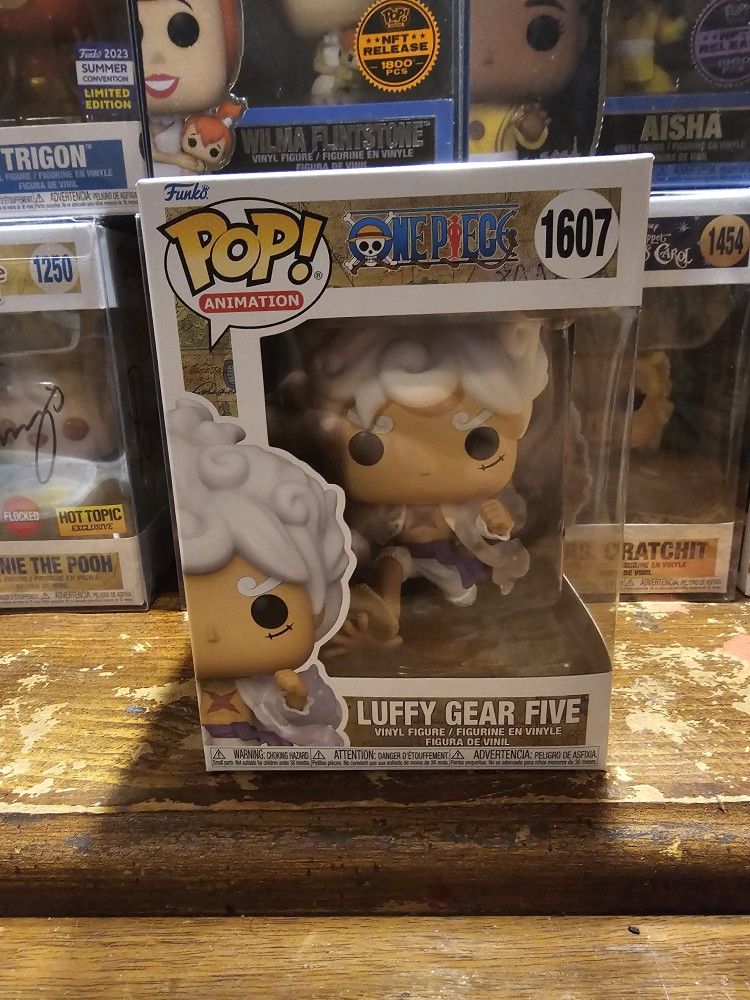 This Funko Pop! Vinyl figure features Luffy in his Gear Five form from the popular anime and manga series One Piece. The highly collectible figure is part of the Pop! Vinyl product line and comes in box number 1607. It is perfect for fans of the franchise and collectors of anime-themed memorabilia. The figure is made of vinyl material and stands at approximately 3.75 inches tall.