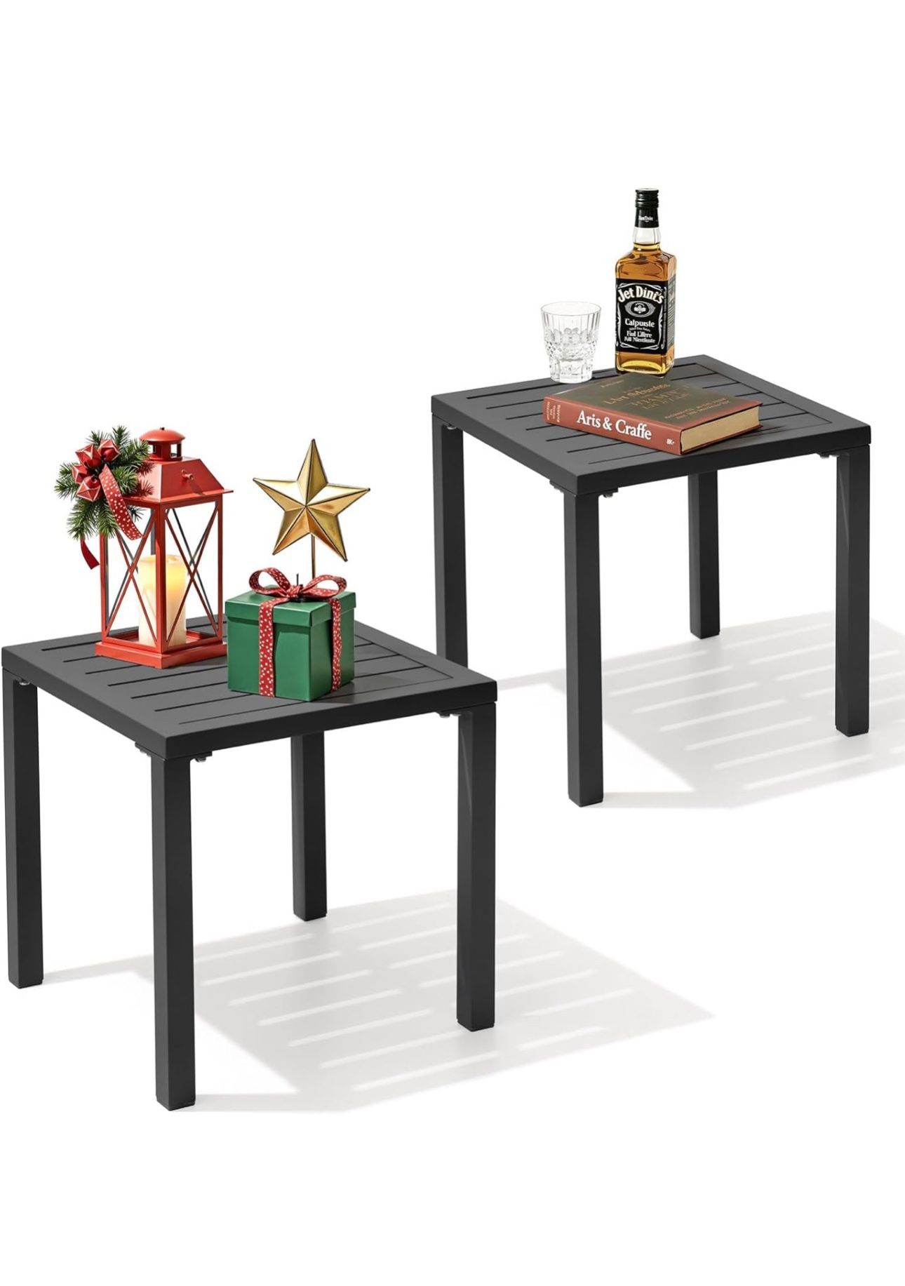 Crestlive Products Aluminum Outdoor Side Table Set of 2, Pool Lounge Chair Side Table, Weather Resistant Small Square Coffee End Table for Patio, Yard, Garden, Porch, Deck, Outdoor New